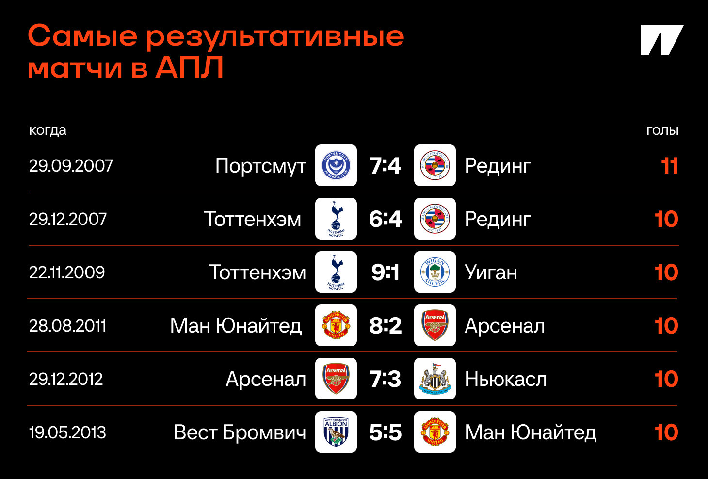 За 33 года существования Премьер-лиги набралось всего 6 матчей, где команды не остановились на 9 мячах.