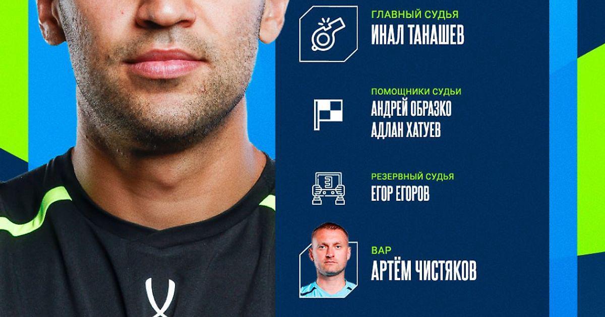 Главным арбитром матча между «Спартаком» и «Динамо» будет Инал Танашев. Ассистенты судьи — Андрей Образко и Адлан Хатуев. Резервный судья — Егор Егоров. ВАР — Артём Чистяков, АВАР — Сергей Цыганок. Инспектор — Александр Гончар.
