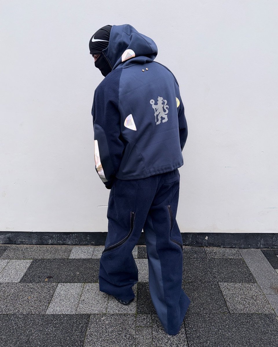 «Саму вещь мы не так чтобы переосмыслили: силуэт Nike Tech Fleece современен. Просто добавили авторских деталей и айдентики «Челси». Поначалу хотели покрыть кофту принтами в виде фанатских тату», – делится Тузе.