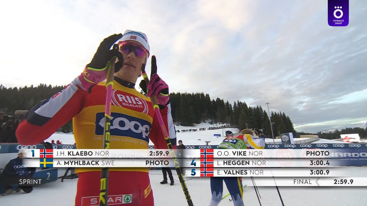 В лидеры вышел Оскар Опстад Вике, но Клэбо вцепился и не отпускал до самого финиша.