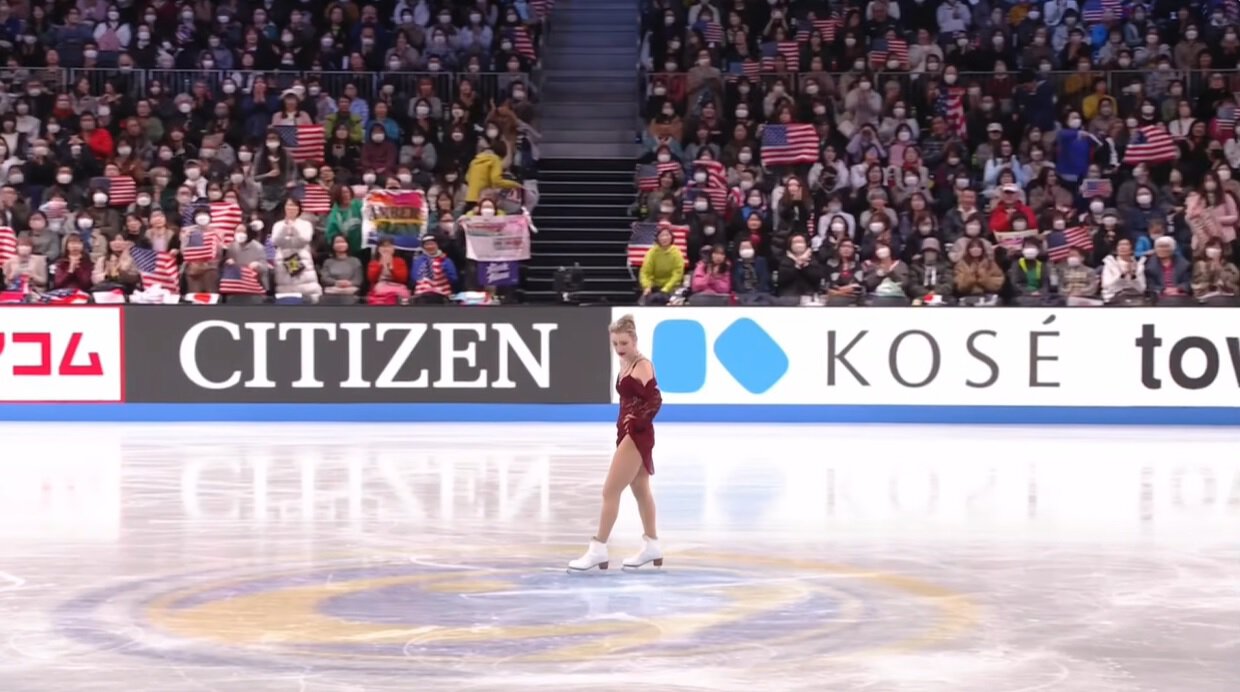 Американка после проката не плакала, но перед поклоном внимательно посмотрела в след от конька, который оставила при заходе на триксель. В этом причина сбоя?