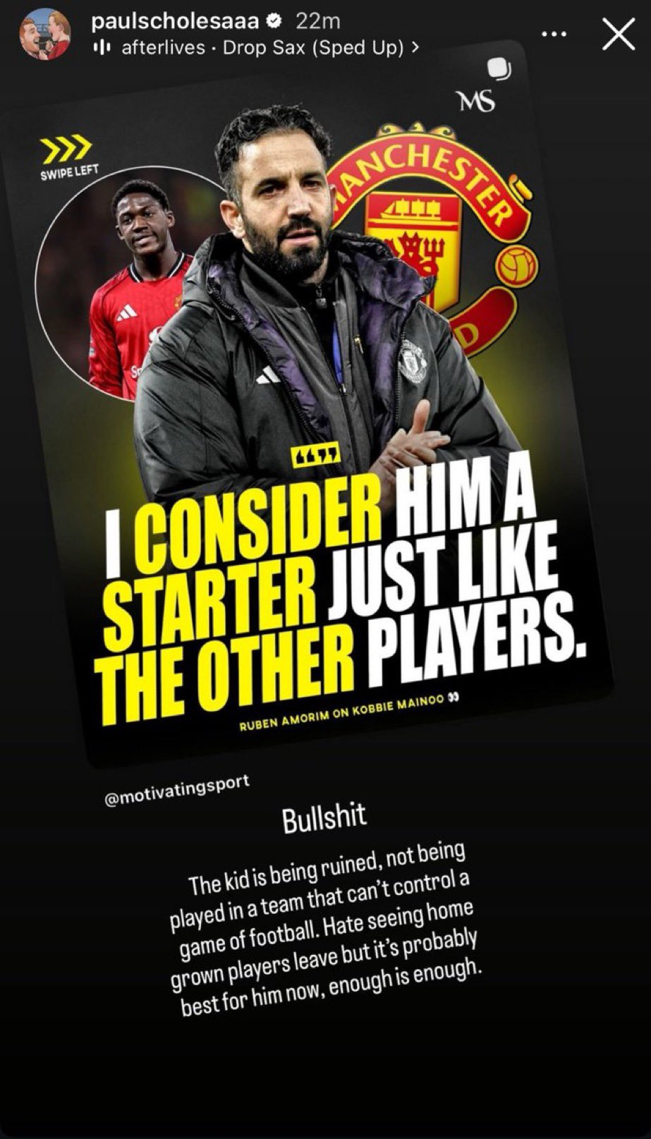 Скоулз сорвался на Аморима из-за игрока «МЮ». А потом передумал и удалил пост 🙈