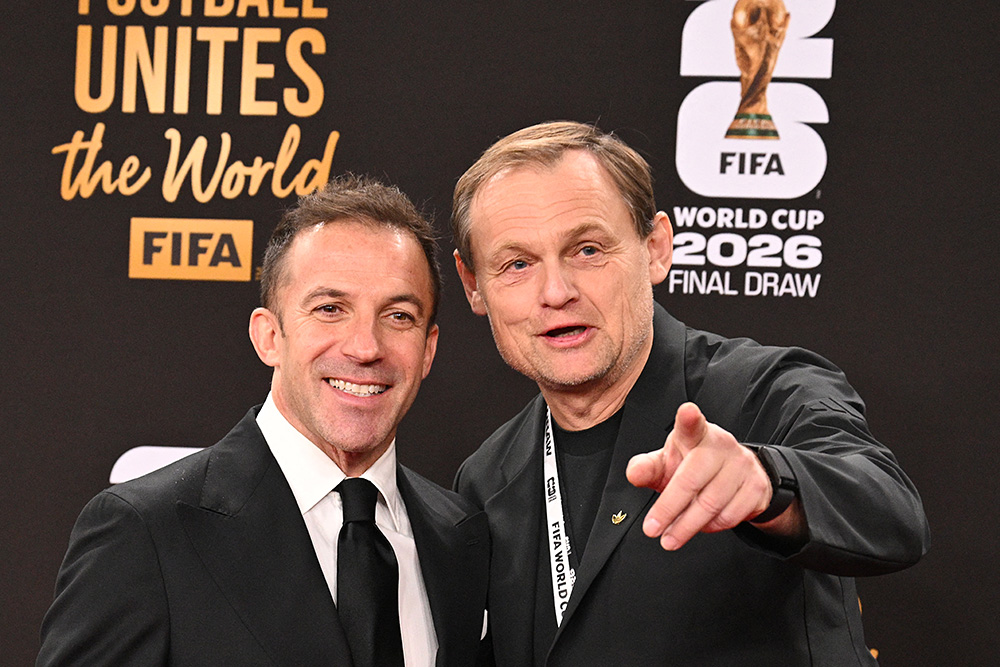 Алессандро Дель Пьеро смотрит куда-то вдаль – куда указывает босс adidas Бьорн Гульден.