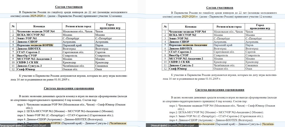 По наводке любителя гандбола и моего блога (я согласовал так написать, правда) обнаружил вот такую интересную «игру неймингов» в Положении Федерации гандбола России (все еще ФГР), которое посвящено Первенству России по гандболу среди юниоров до 22 лет (команды молодежного состава) на сезон 2025-2026 гг. (он же «турнир дублей»):