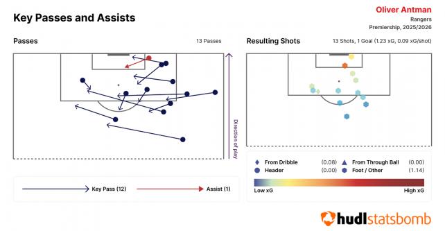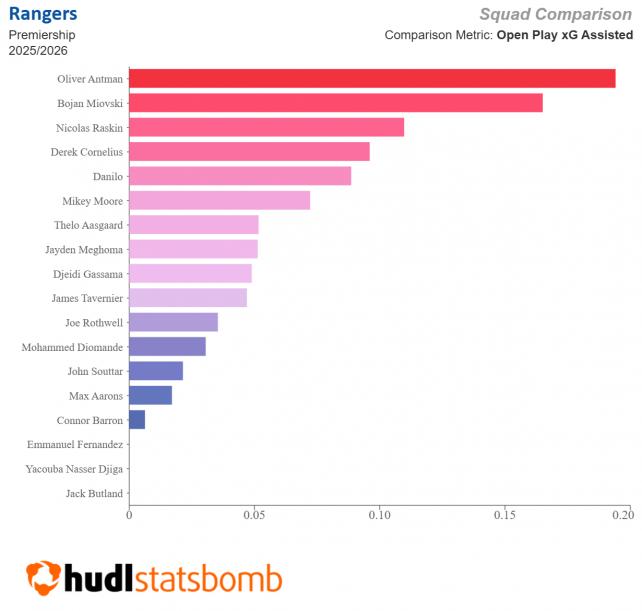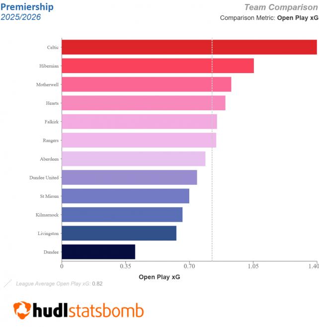 За первые 13 туров «Рейнджерс» создавал 0,85 ×G в среднем за игру, что является лишь шестым показателем в лиге. Впереди в том числе и повышенный в классе «Фолкерк».