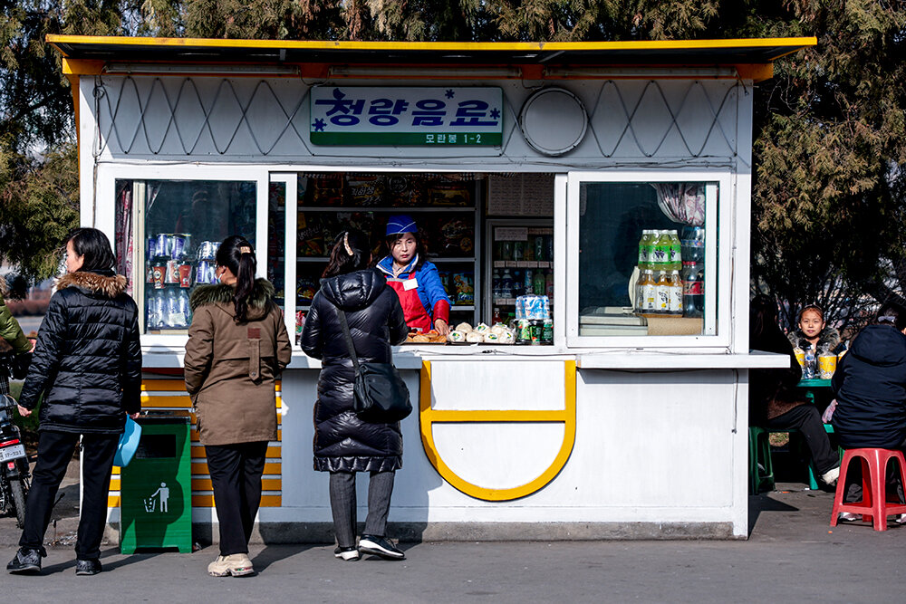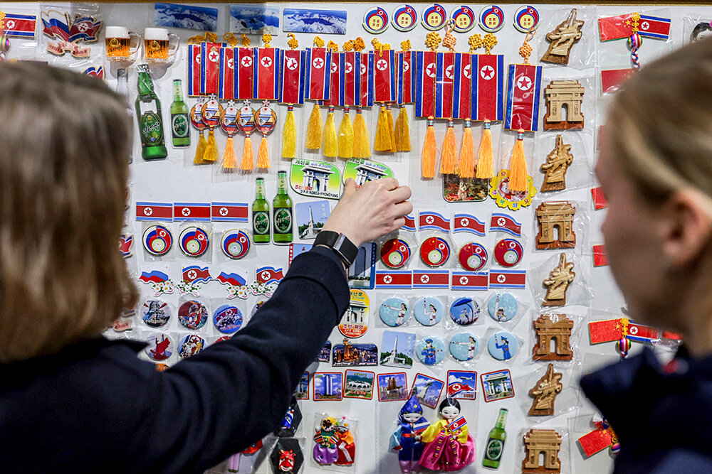 Нафотографировавшись, мы поехали за сувенирами. Магазины в КНДР бывают двух типов – для местных, где торгуют за северокорейские воны, и для иностранцев. Там все цены в долларах, хотя евро и юани тоже принимают. Магазин для туристов чем-то напоминает советский универсам. В каждом отделе свой продавец, почти все они говорят по-русски. Это неудивительно: русский язык входит в тройку самых популярных иностранных языков для изучения в КНДР. Ценников нет – стоимость товара сообщают устно. Затем продавцы выписывают чек, с которым нужно пройти к отдельному прилавку и оплатить. Девчонки набрали жасминового чая, местной косметики, разных конфет и шоколадок в подарок.