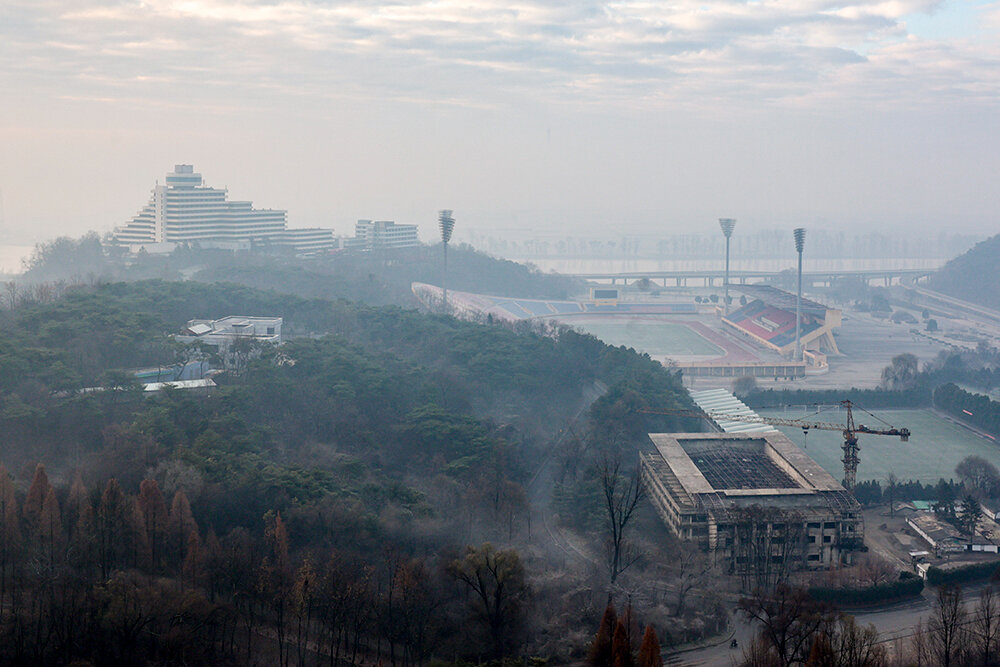 Мы даже не думали, что в Пхеньяне так много небоскребов, особенно в центре. Огромные новые дома – как будто мы где-то в Сингапуре или Шанхае. Наш отель тоже высокий – 30 этажей. Он стоит посреди большого спортивного комплекса. Гостиница, кстати, довольно современная – ее отреставрировали 10 лет назад. Есть бильярд, бассейны, магазины и даже спа-центр.