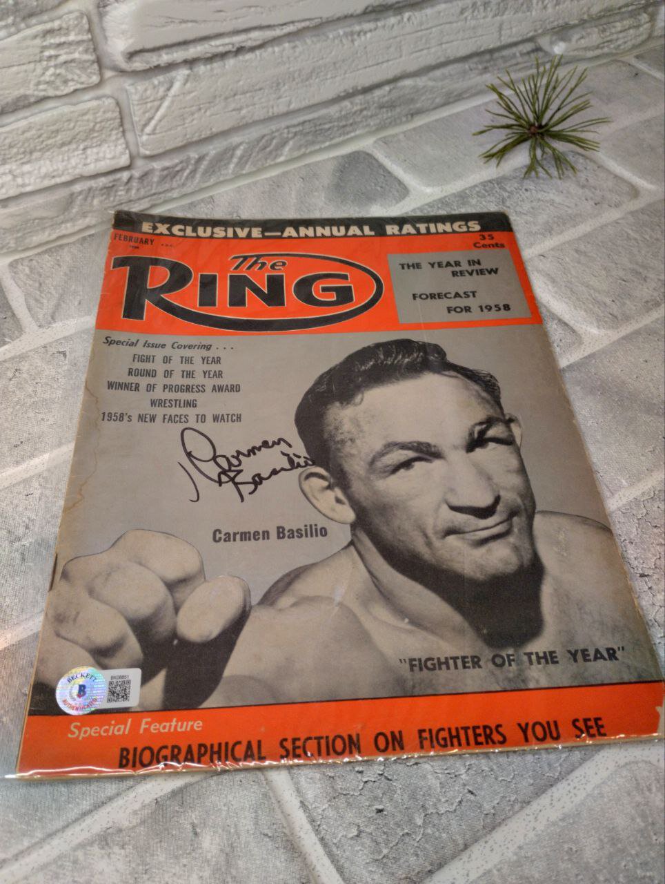 Другой недооцененный лот – журнал The Ring 1958 года с автографом легендарного Кармена Базилио, в честь которого в его родном городе Канастота в 1990-м открыли Зал и музей боксерской славы. Я переписывался с его личным водителем: увидел у того на странице много позиций, связанных с Базилио. Он рассказал, что жил с Базилио по соседству и возил его на мероприятия в Зал славы, где пересекался со многими боксерами – так собрал много лотов.
