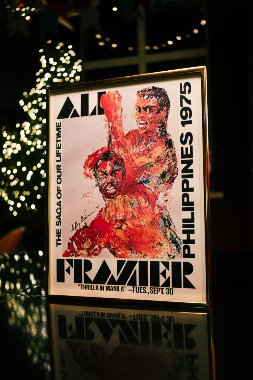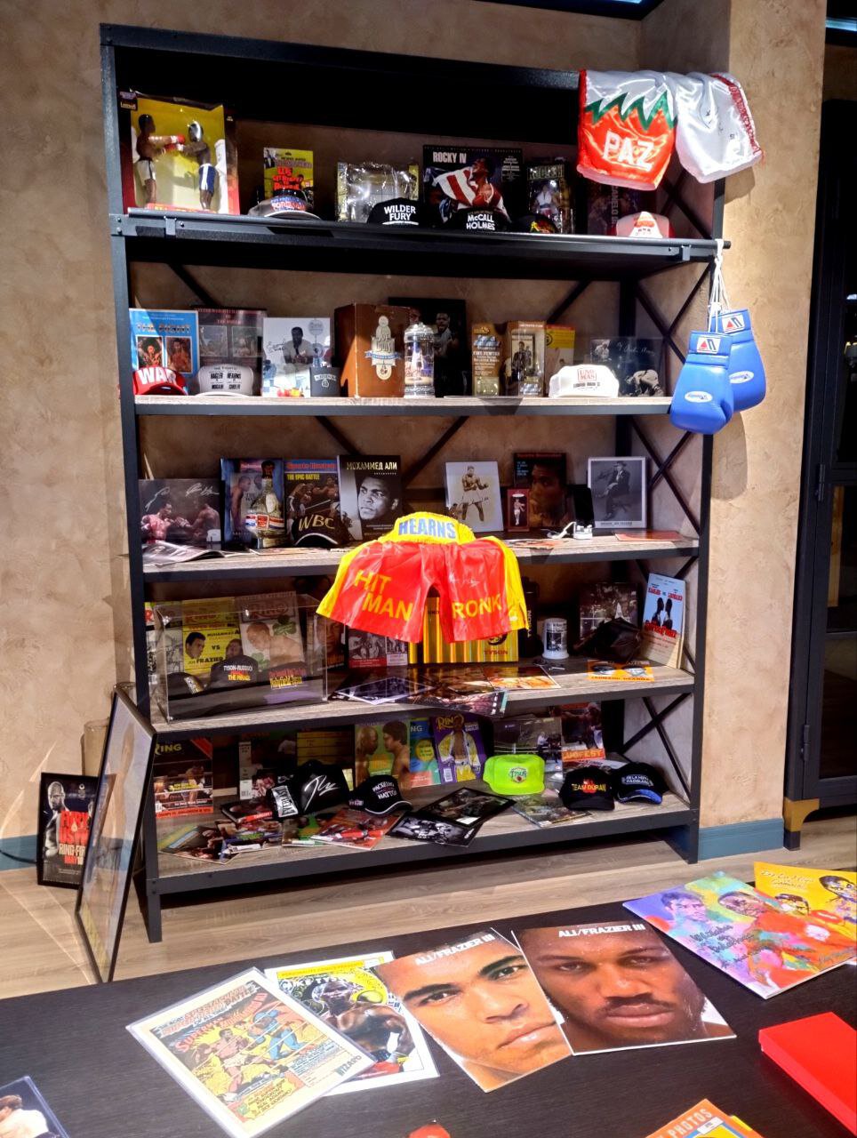Даже если вы совсем не интересуетесь боксом, такая вселенная вас точно зацепит. Перчатки с автографами легенд бокса, постеры с боев, выпуски журналов 50-летней давности, комикс «Супермен против Али», графин Рокки Марчиано в коллаборации c Jim Beam и многое другое. Впечатляет?