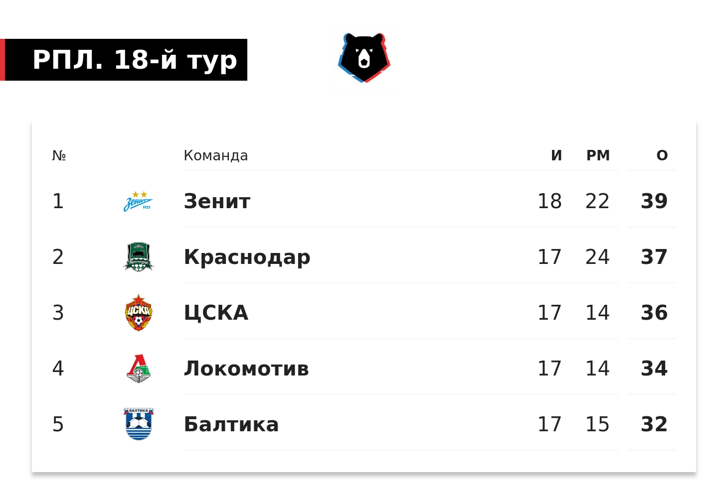 ● «Зенит» возглавил РПЛ минимум до матча «Краснодар» – ЦСКА. Петербуржцы за весь сезон проиграли только «Ахмату» (0:1). Упадут на второе место только в случае воскресной победы команды Мурада Мусаева.