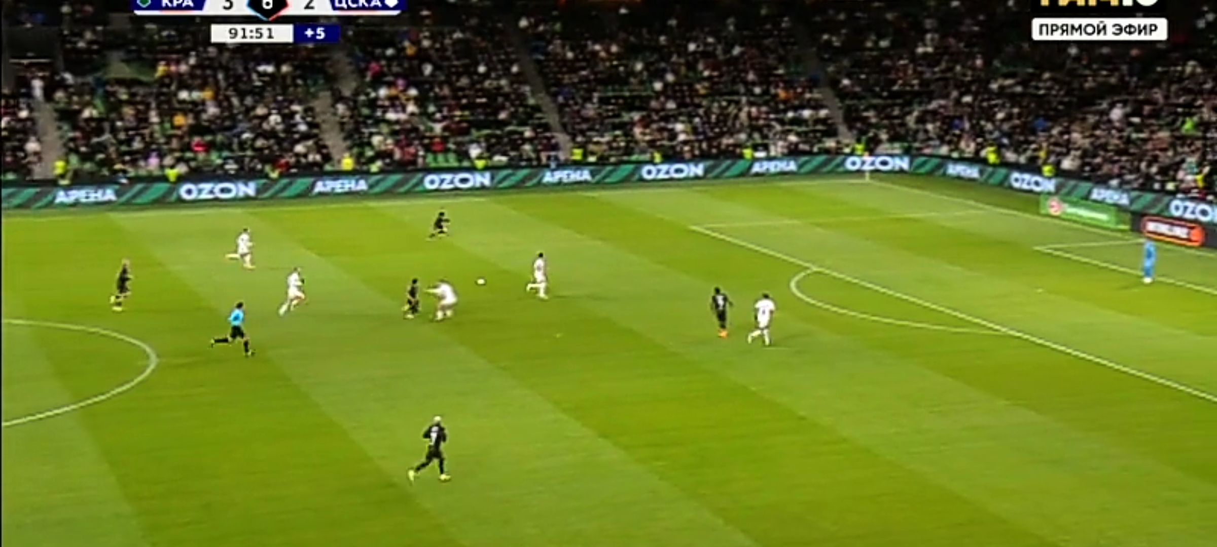 «Краснодар», ведя в два мяча, идёт в прессинг шестью(!) игроками с персональной опекой даже для вратаря.