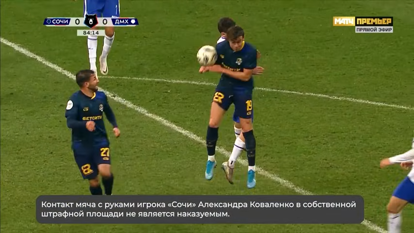 в котором ДСИ подтвердил подходы к «игре рукой», декларированные после пенальти в игре ЦСКА - Акрон. И подробно рассмотренные нами здесь: при прыжке футболиста естественное положение рук - перед собой с опусканием вниз в верхней точке прыжка.
