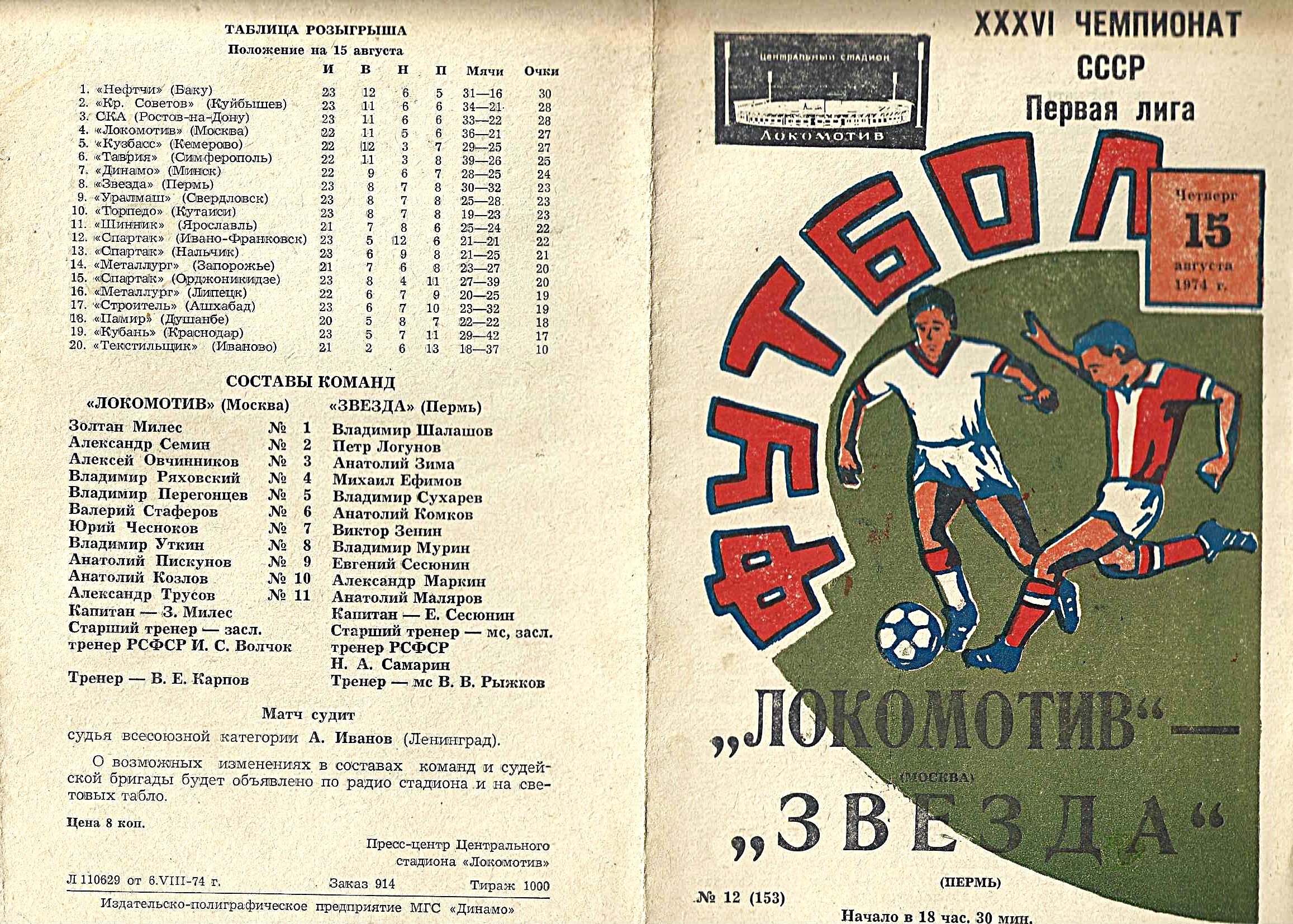 Локомотив - Звезда. 15 августа 1974 года / Первая лига СССР
