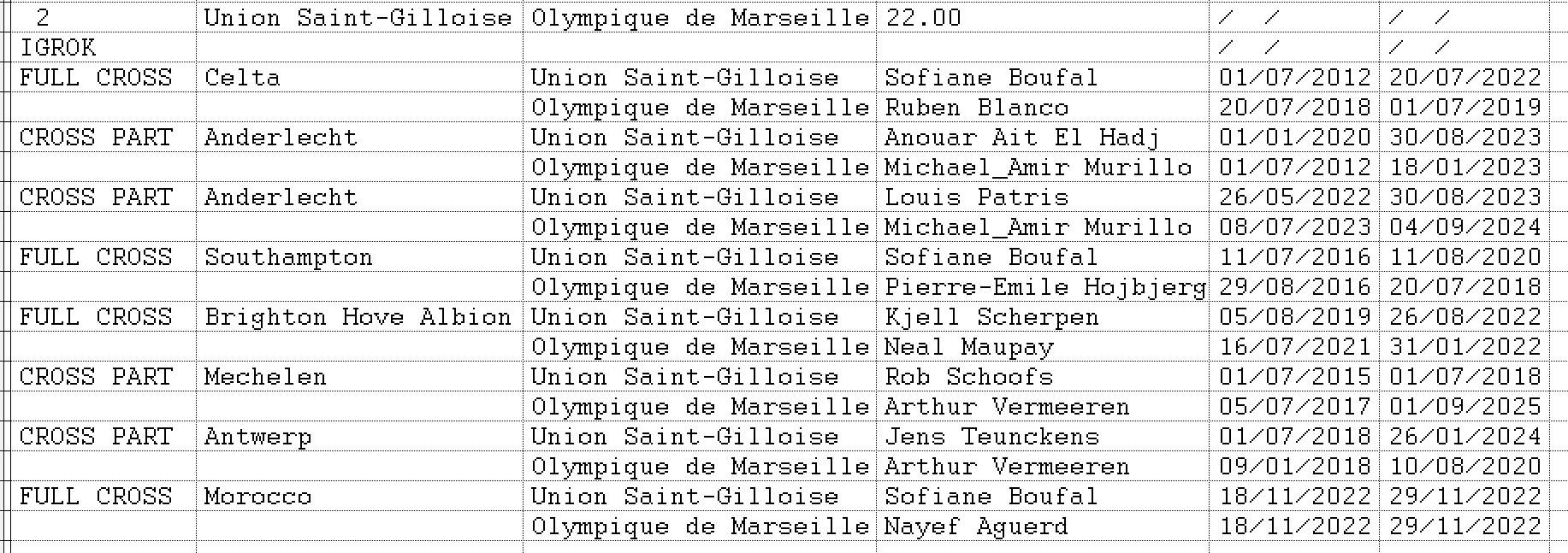 3.Соперники играли за один и тот же клуб (возможно в разное время- NO CROSS)
