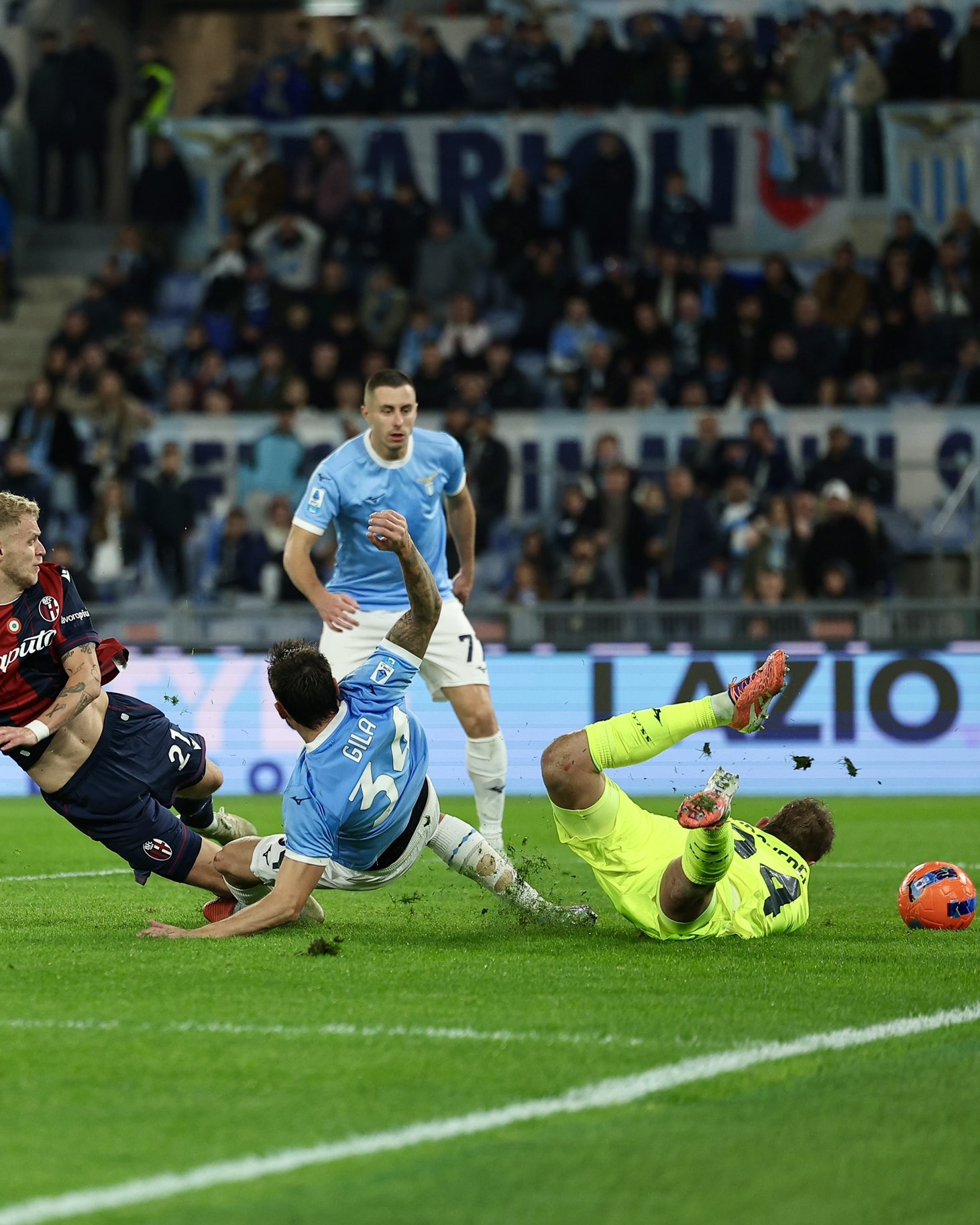 «Лацио» на протяжении первой половины встречи смотрелся существенно динамичнее, агрессивнее и быстрее «Болоньи». Команда Итальяно избрала консервативный для себя метод управления встречей. Прессинга мы почти не видели, зато видели средний блок по схеме 4-4-2; в фазе конструкции атак паре ЦЗ постоянно помогал дополнительный игрок из середины поля: сначала Моро, затем — Фергюсон. Гости атаковали преимущественно правым флангом: Орсолини не сказать, что был хорош, но, по крайней мере, неплохо взаимодействовал с Дзортеа, который находится в отличной форме.