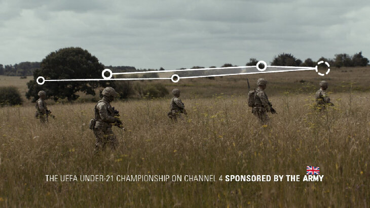 Чуть ранее, в июне 2025 года, армейская реклама уже мелькала во время трансляций молодежного Евро. В роликах передвижение армейского патруля по заросшей кустами саванне сравнивалось с тактической схемой построения игроков на поле.