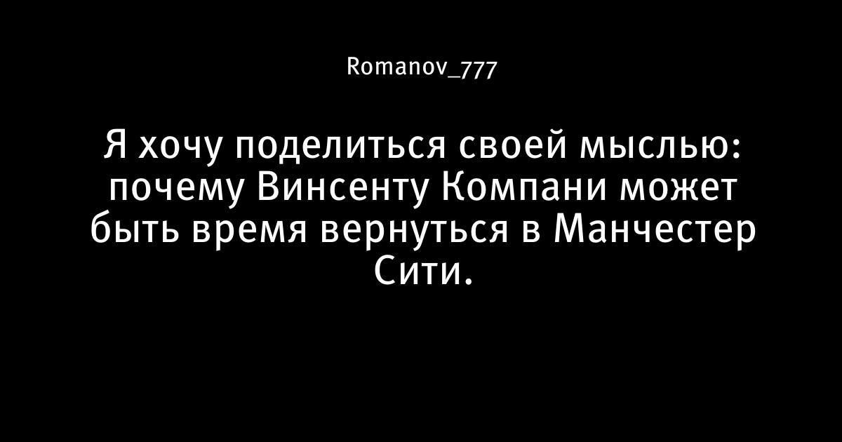 Я хочу поделиться своей мыслью: почему Винсенту Компани может быть время вернуться в Манчестер Сити.