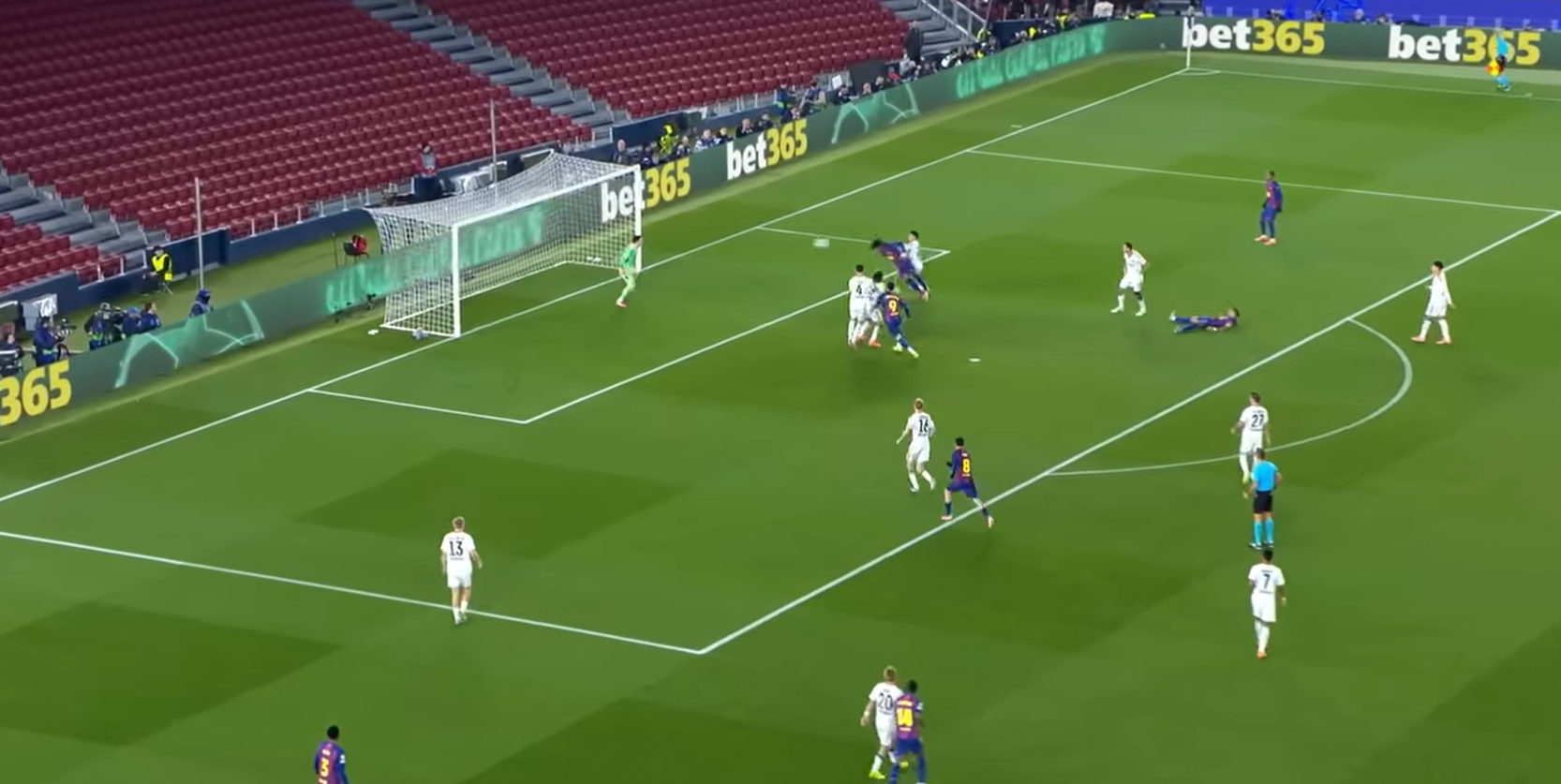 Во втором тайме «Барса» сразу проверила идею. Рэшфорд сместился, загрузил мяч в штрафную, Кунде вовремя открылся под подачу — 1:1.