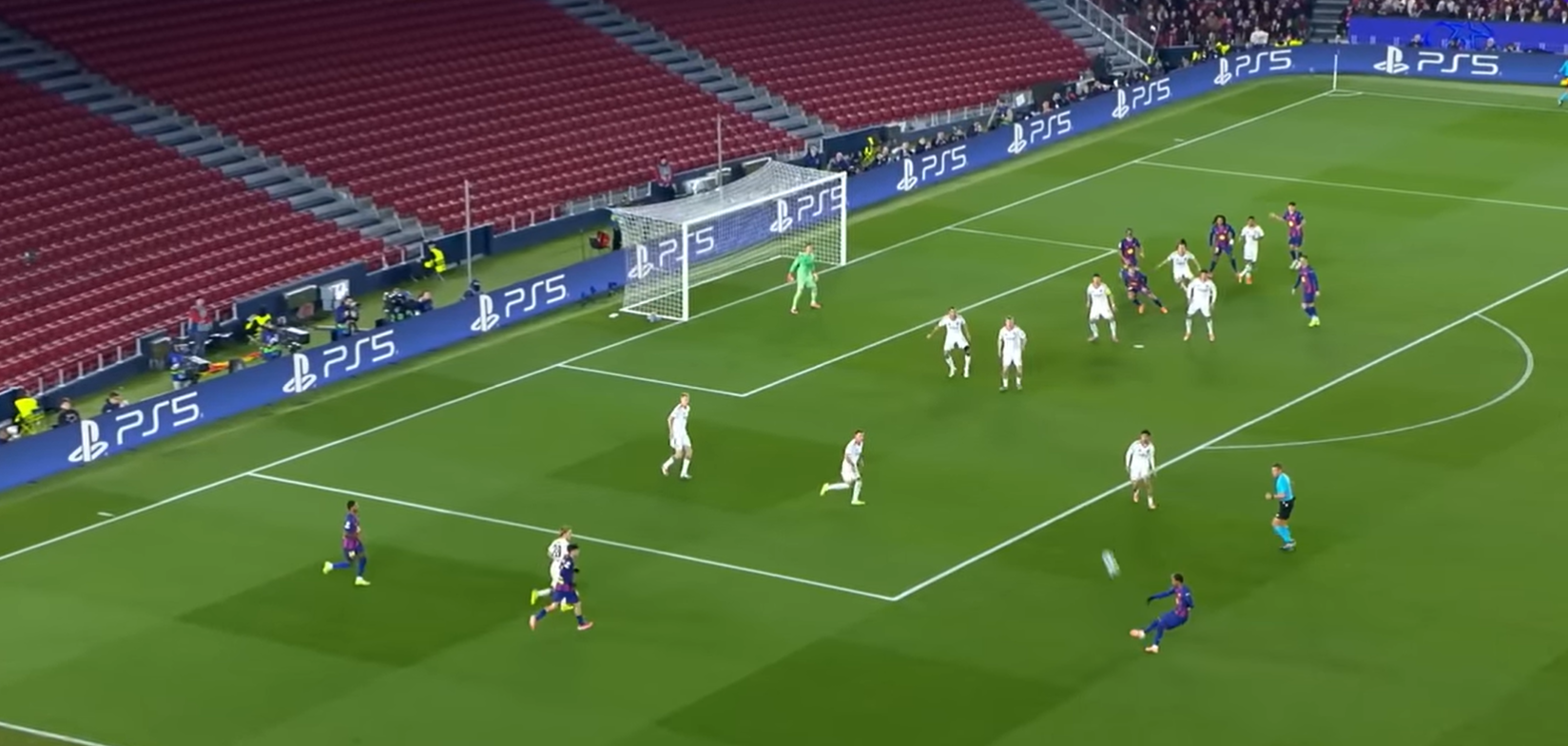 А дальше — то же самое. После не самой точной подачи Ямаля «Айнтрахт» снова ошибся на втором этаже: Кунде выпрыгнул выше всех и забил уже второй мяч головой.