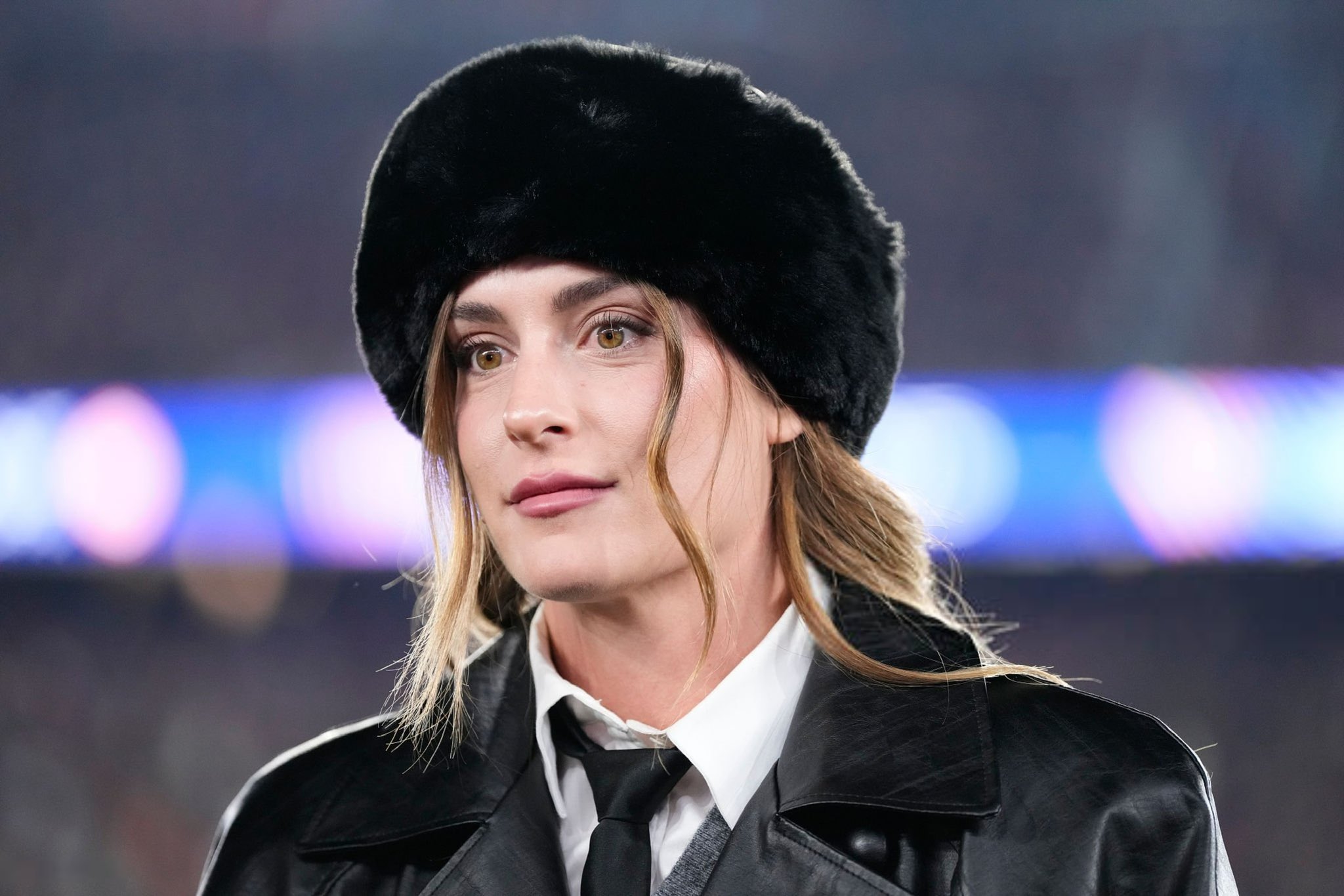 На «Камп Ноу» тем вечером, видимо, было прохладно. Легендарная Алексия Путельяс пришла поддержать мужскую команду, футболистка выбрала образ в популярном стиле Slavic girl: меховая шапка, кожаное пальто, высокие сапоги.
