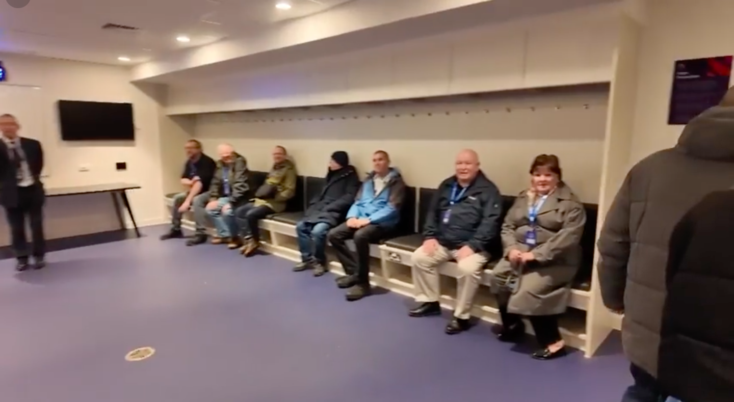 Раздевалка «Эвертона» – в форме большого круга. Фамилии футболистов – на мини-табло. А эмблема наверху, так никто и не затопчет.