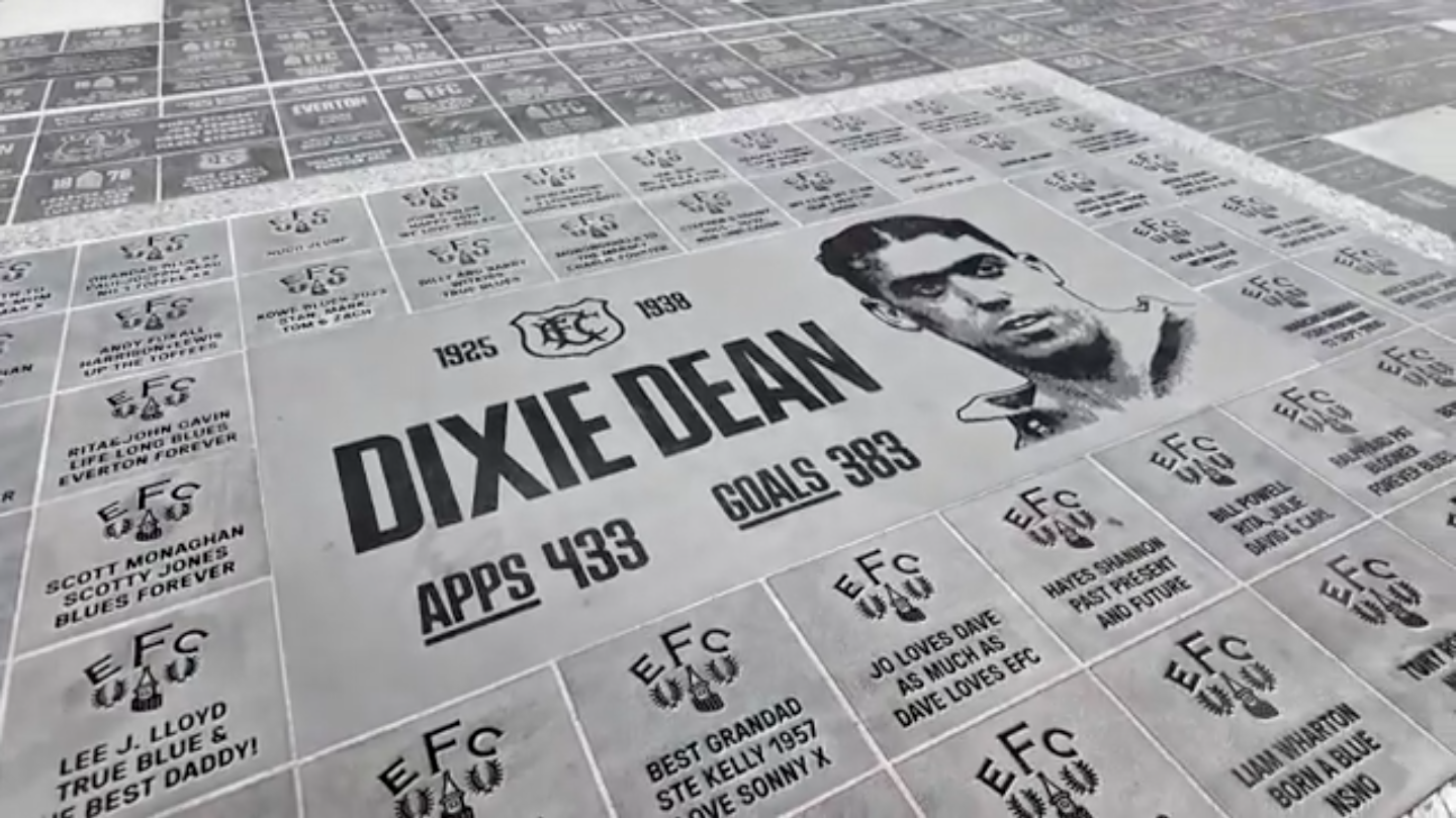 У новой арены памятная плитка: каждый камень носит имя выкупившего его болельщика. Про легенд «Эвертон» тоже не забывает: прямо там фото и статистика Дикси Дина.