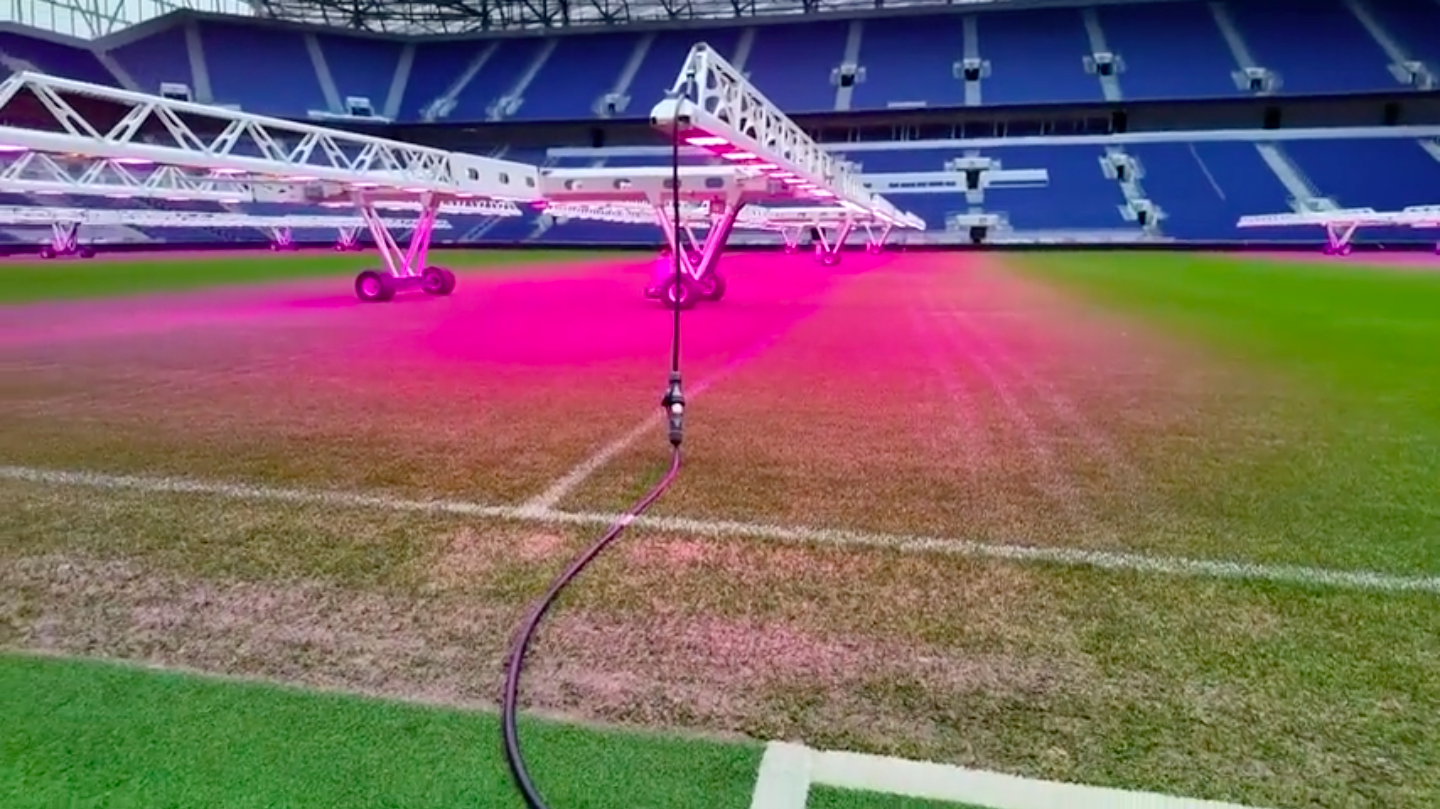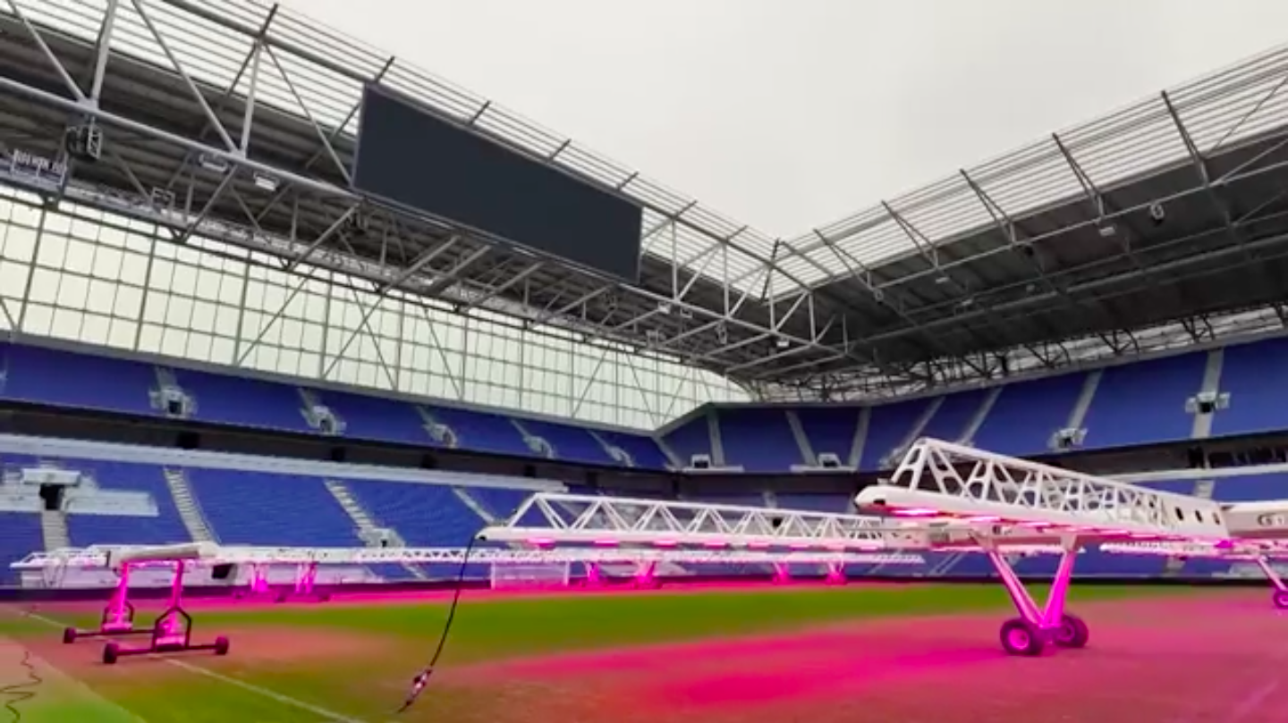На арене работает подогрев: гид предупреждает, что на поле розовый цвет, никакого красного!