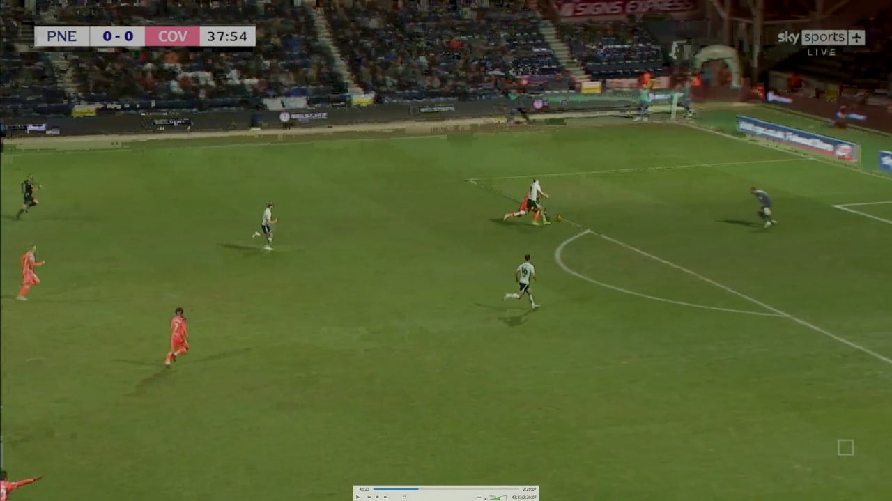 И здесь совершается главная ошибка — через 3 минуты «Ковентри» садится в оборону. Через 6 минут после пропущенного гола вышедший на замену Пол Валентин протаскивает мяч по флангу без сопротивления, навешивает, и всего лишь второй момент у «Престона» становится голевым — Джеббисон замкнул подачу. После ответного гола уже хозяева сели в оборону и дотерпели до финального свистка.