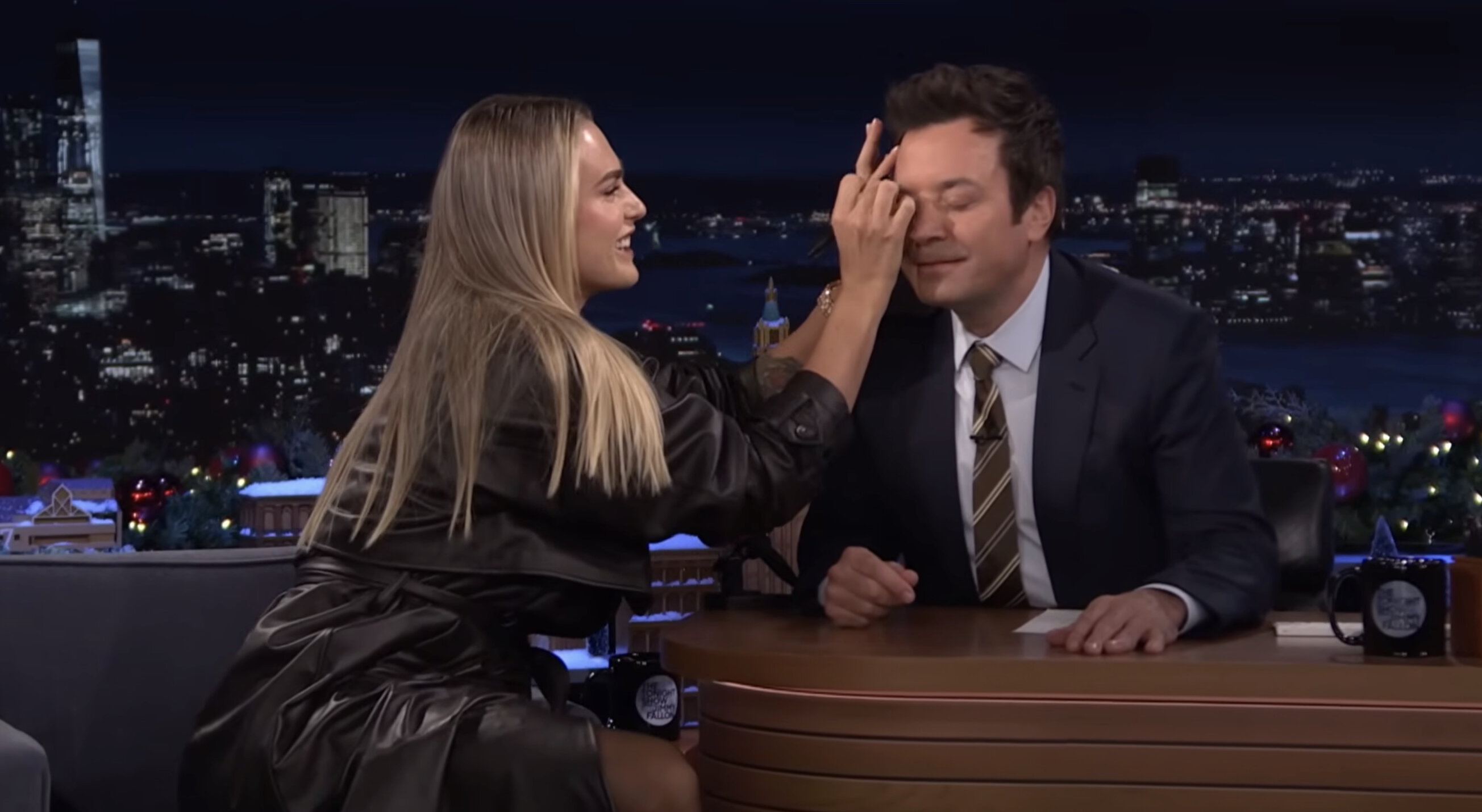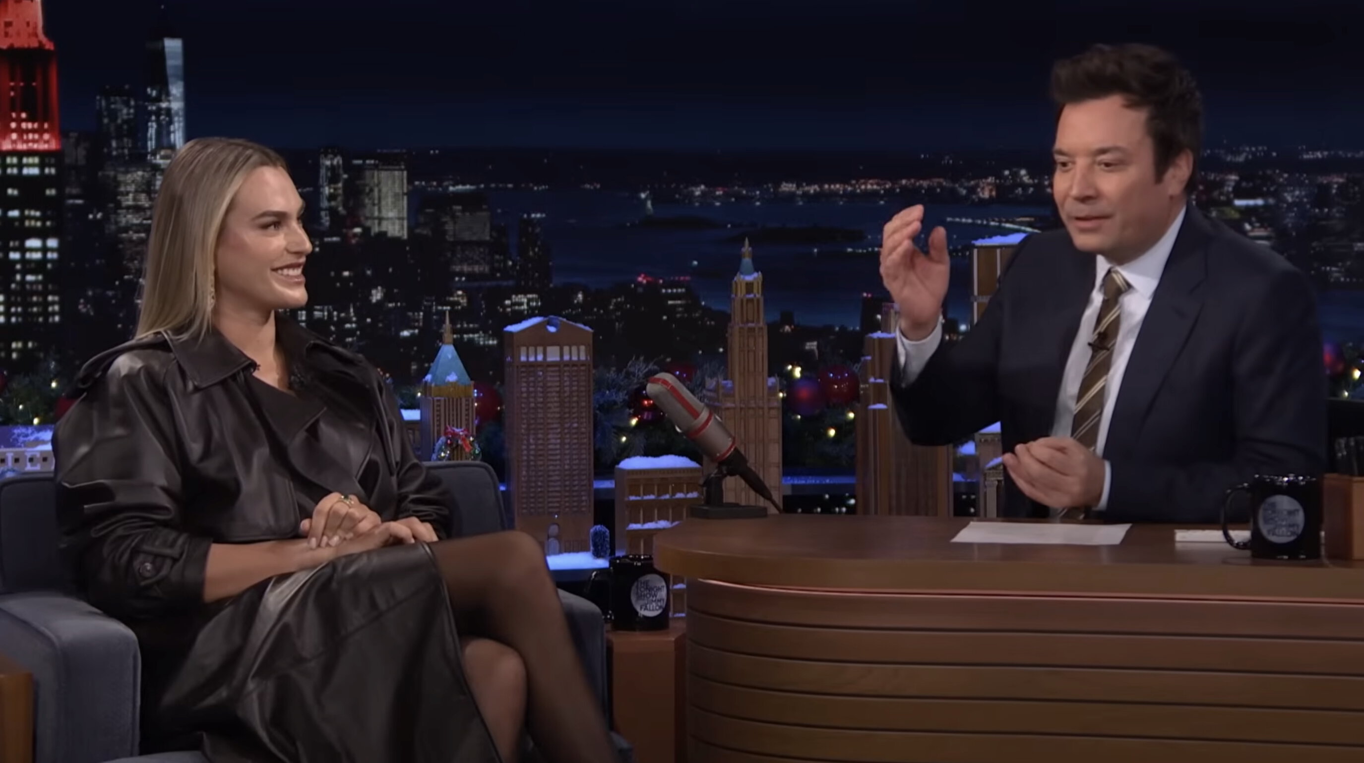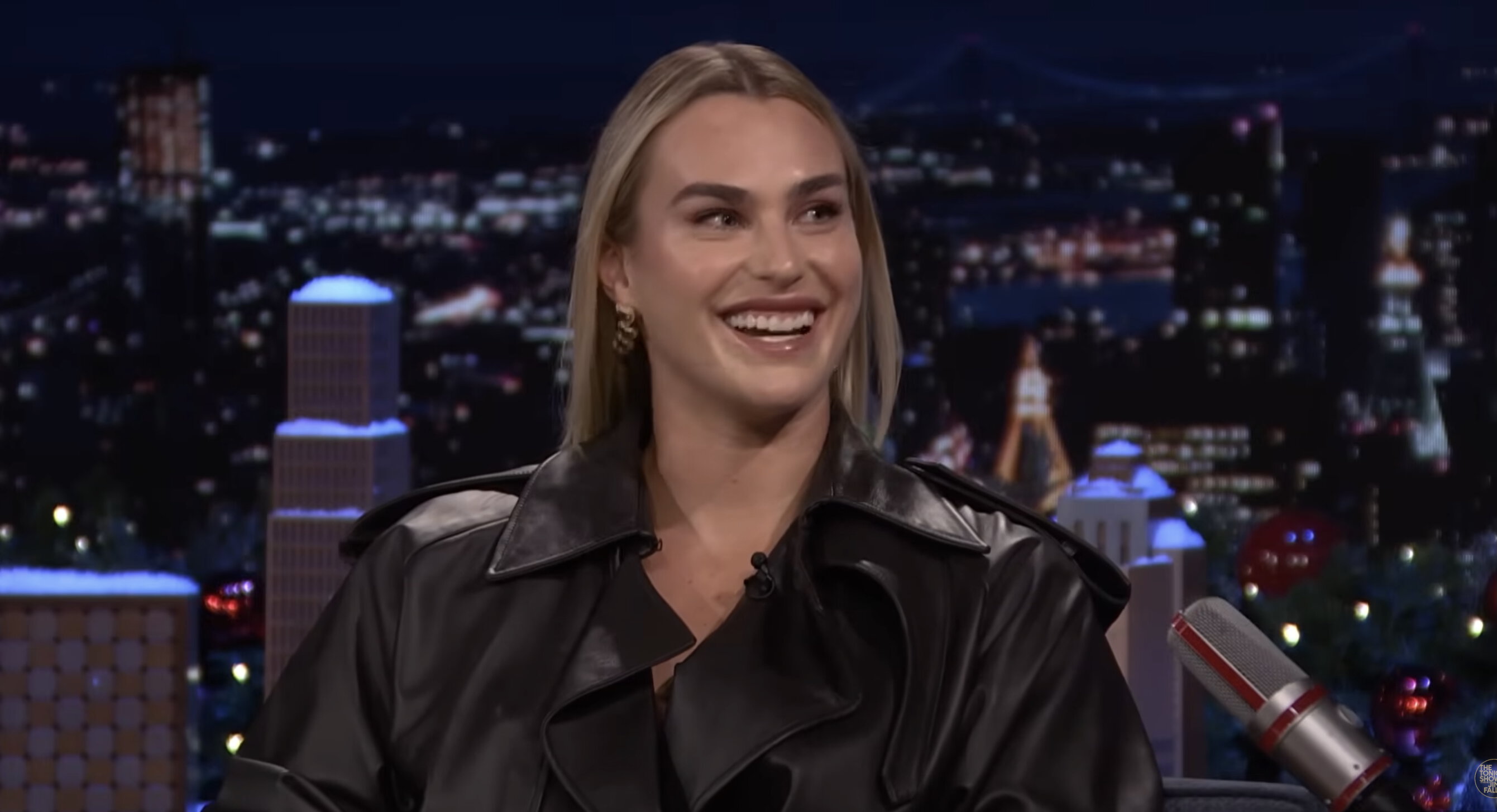 С эфира Соболенко, в отличие от другой гостьи Фэллона Виктории Бекхэм, вышла в другом наряде, чем зашла на него, и отправилась покорять Нью-Йорк дальше.