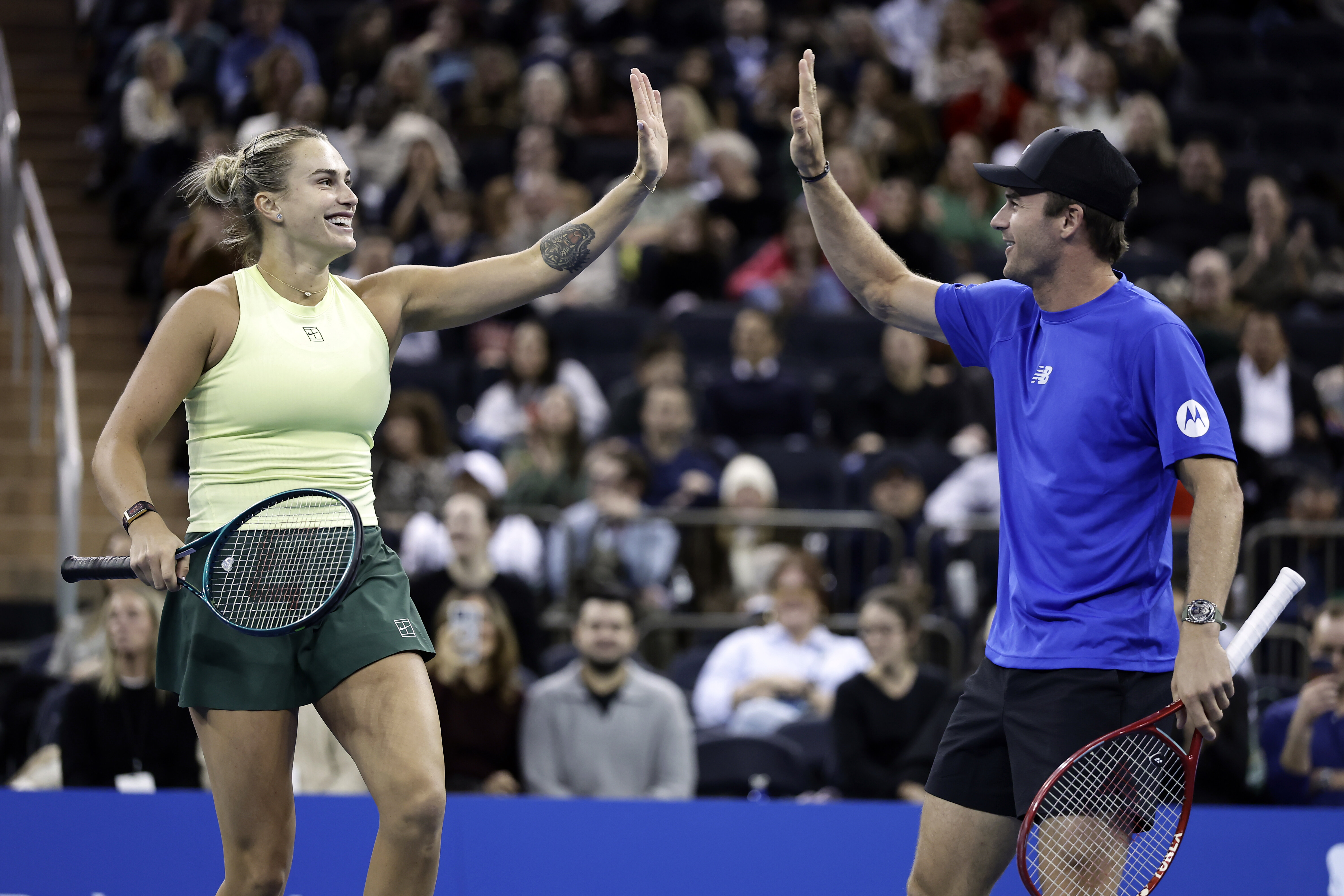 Следующей остановкой в турне Арины стал Нью-Йорк, куда она вернулась впервые после сентябрьской победы на US Open. Там она сыграла на аналогичном показательном вечере в «Мэдисон-сквер-гарден» (место Шелтона занял Томми Пол),