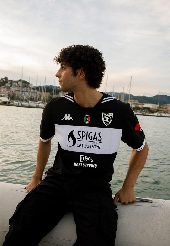 «Специя» из итальянской Серии Б рассказывает что-то про связь своего гостевого комплекта с дизайном таинственного водолаза из фильмов 90х. На удивление огромное количество спонсоров сочетаются с формой, так, что без них было бы уже не то.
