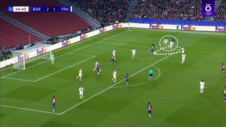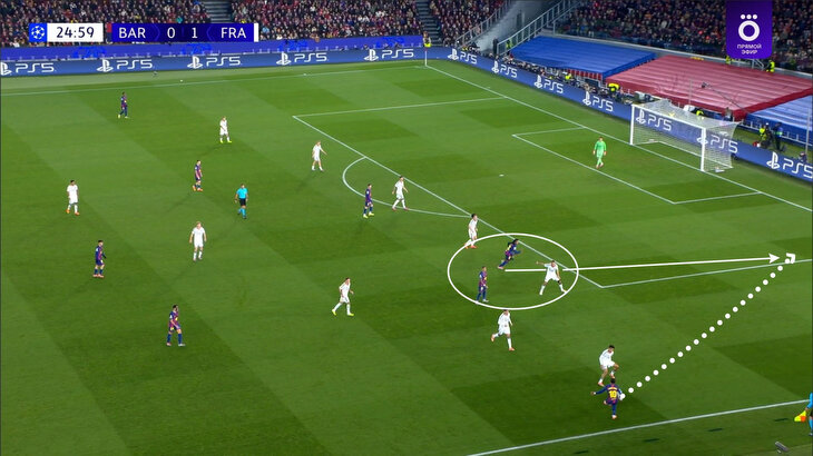 Правый фланг «Барселоны» почти всю игру напрягал «Айнтрахт» и действовал непредсказуемо благодаря мощному взаимопониманию.