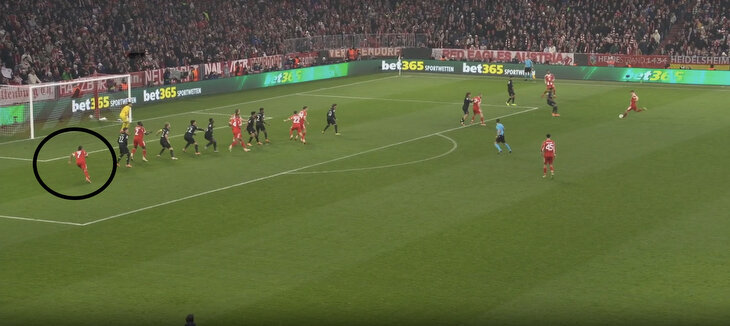 Комфортный разрыв в два гола был достигнут в схожей манере, только теперь штрафной, а не стандарт, подача не сразу в штрафную. Очень странная игра Ивана Фреснеды: он не контролирует Гнабри, при этом находится за спиной Дайо Упамекано и не способен ему помешать. Просто бесполезный защитник в эпизоде. Гнабри вместо удара здорово скинул мяч на Джонатана Та, который расстрелял ворота.