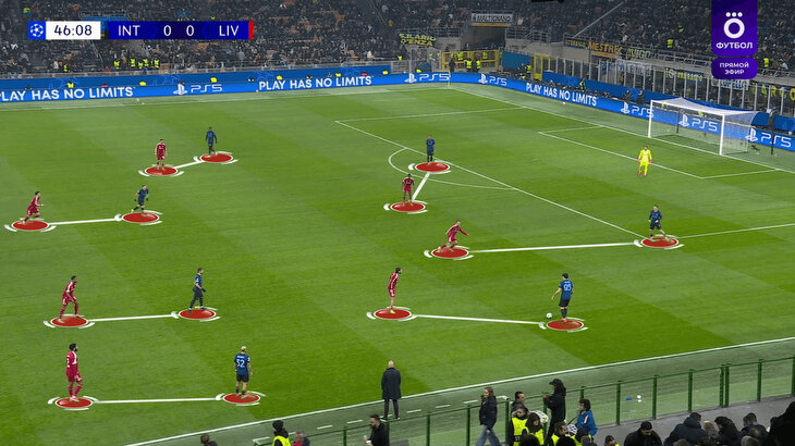 Изменение главным образом затронуло Райана Гравенберха. В первом тайме голландец создавал с парой ЦЗ численный перевес против пары Лаутаро-Тюрам. Во втором участвовал в прессинге наравне со всеми. «Ливерпуль» не только забрал мяч (57% против 44% в первом тайме), но и обрушил точность передач «Интера» – с 89% до 81%. Хозяева прижались и начали допускать редкие для матча моменты.