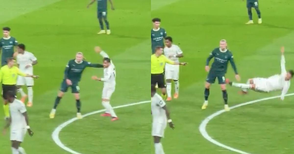 И момент действительно получился заметным. Асенсио слишком плотно опекал Холанда, Эрлингу не понравилось — он слегка оттолкнул испанца. Но то ли Асенсио ждал контакта, то ли толчок вышел мощнее, чем казался со стороны — защитник отлетел и упал на газон. Клеман Тюрпен дал штрафной в пользу «Реала».