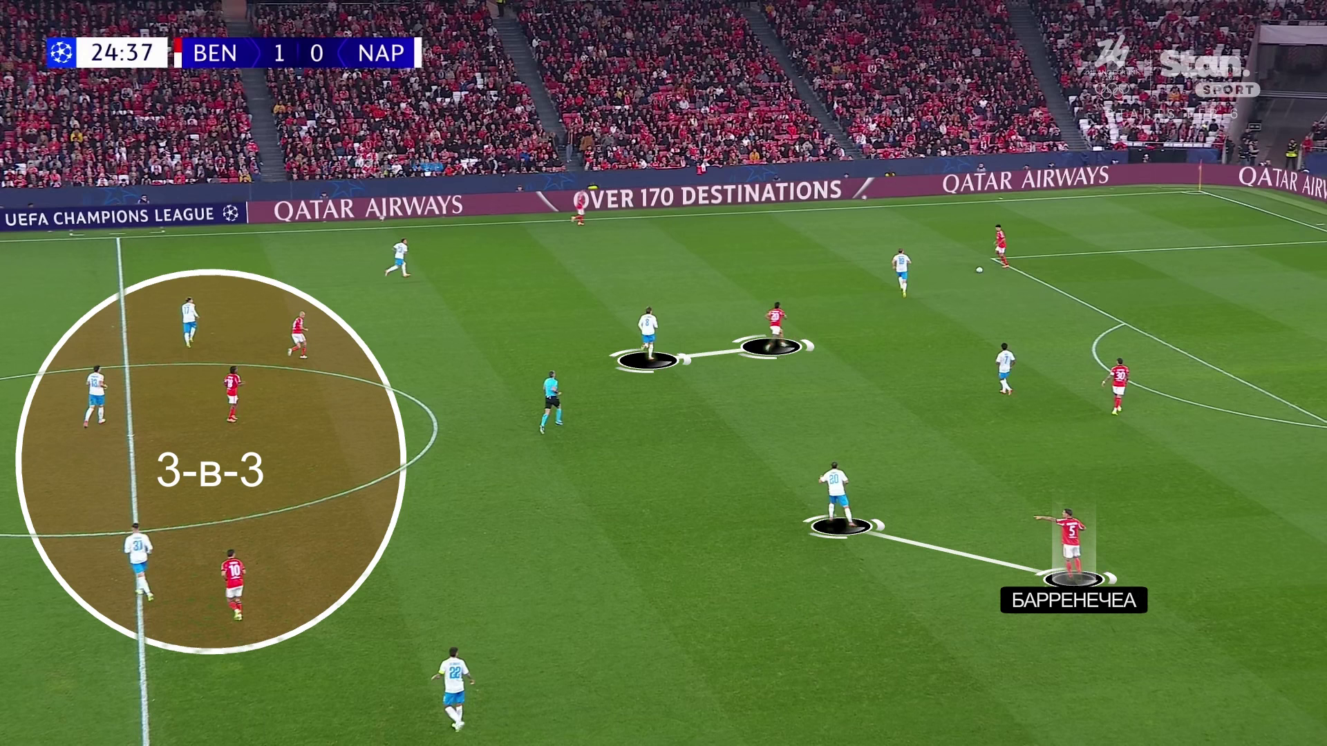 «Бенфика» абсолютно по делу обыграла «Наполи» – полностью нейтрализовали атаку итальянцев и создавали угрозу на пространстве (как раз детали этой стадии затрагиваются в вопросе).