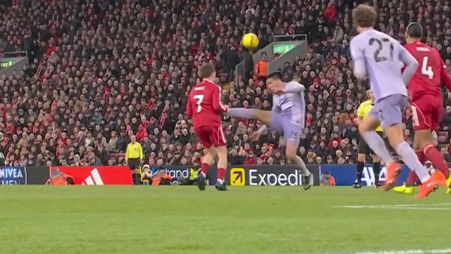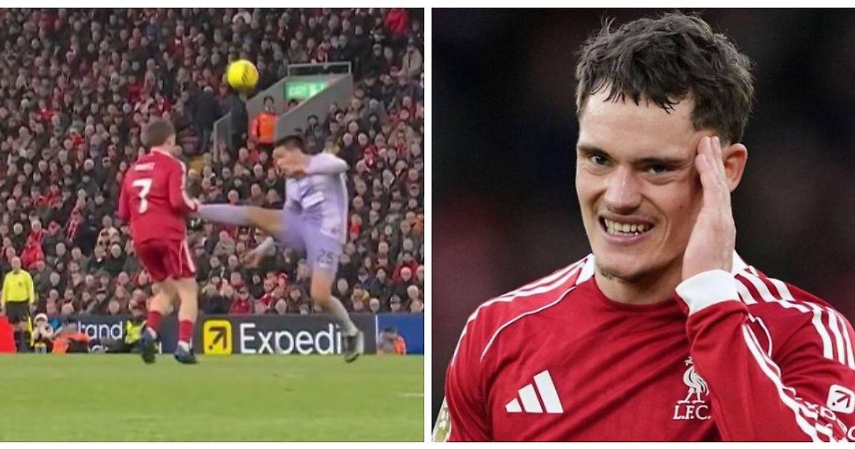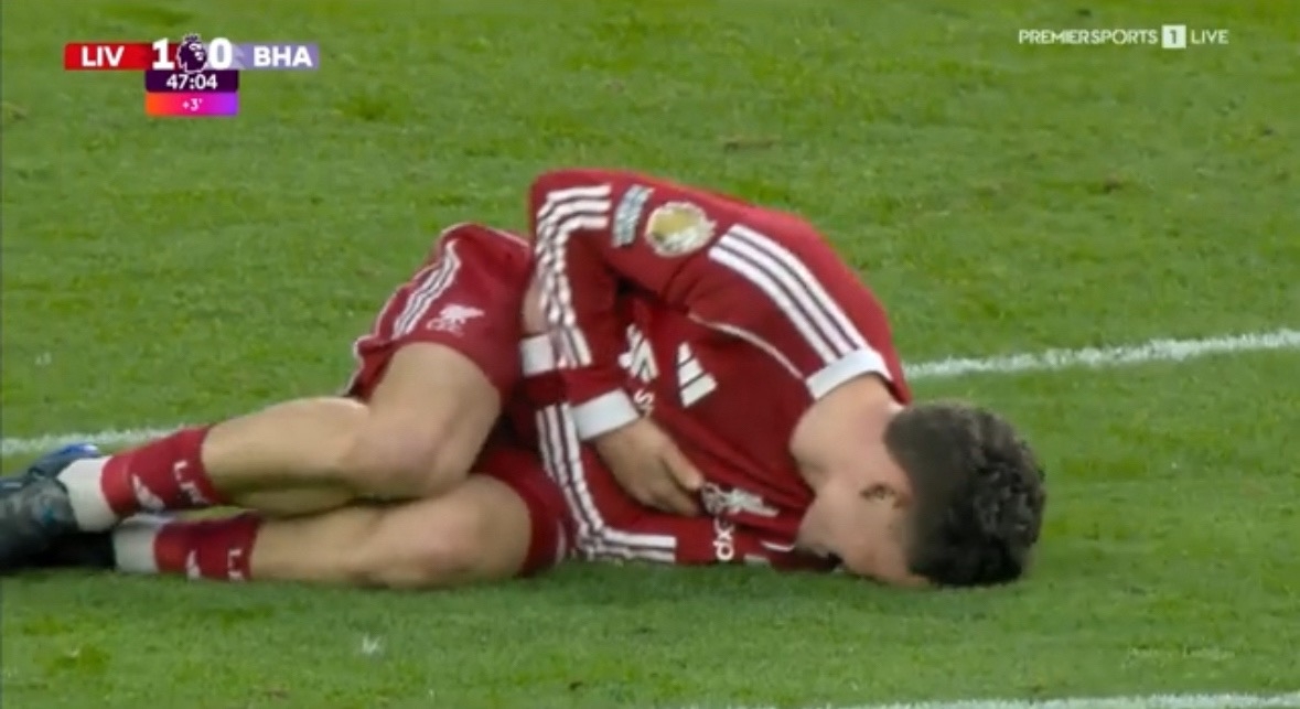 Мерсисайдцы, и так страдающие из-за травм, чуть не остались еще и без Флориана Виртца. Под занавес тайма Диего Гомес попал немцу шипами в грудь, выглядело сурово.