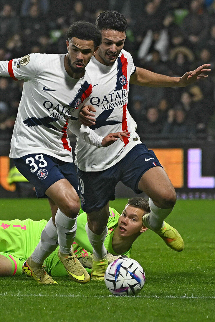 «Мец» и после перерыва несколько раз вскрывал парижан. Мяч до Сафонова долго не доходил: соперники били мимо, в блок или не доводили до конкретики вообще. Но на 62-й минуте Матвею пришлось действовать: защитник Коффи Куао из-за штрафной зарядил в ближний угол, Матвей уверенно перевел в сторону и сразу подбодрил партнеров.