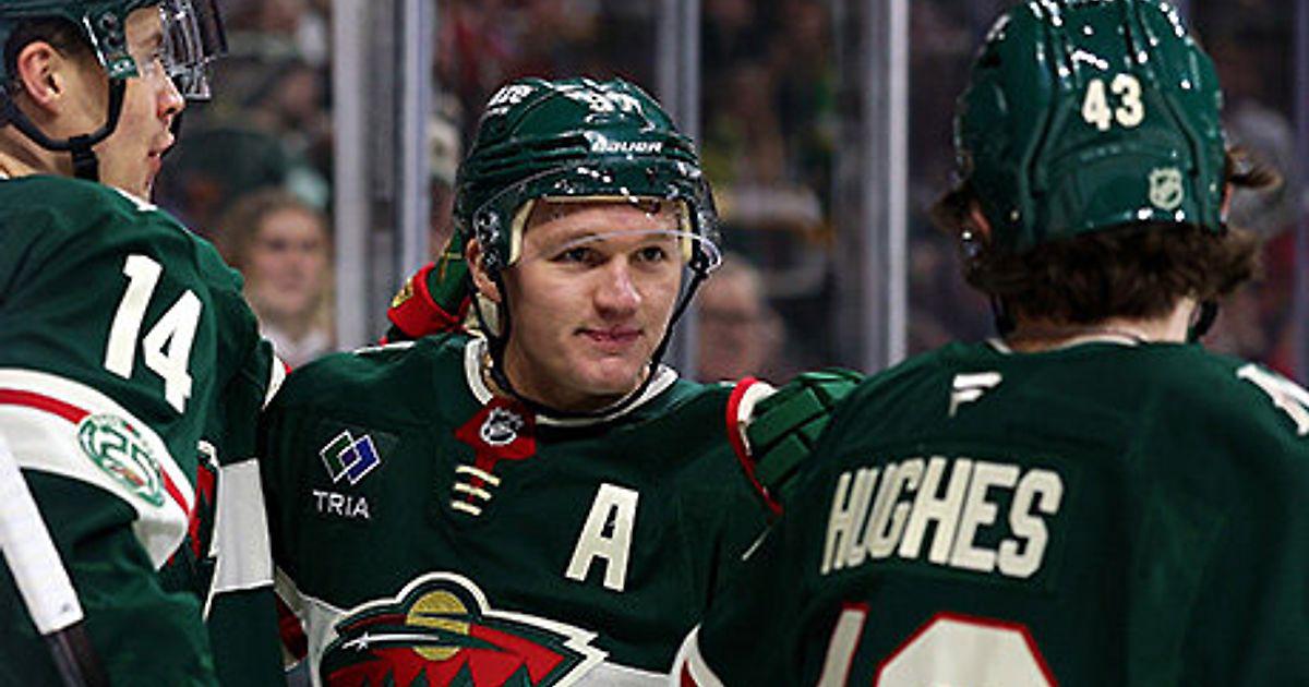 Дебют Хьюза за «Миннесоту»: сразу забил, отбегал 27 минут, отобрал у Капризова первую звезду матча