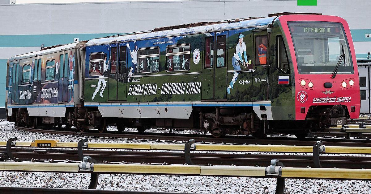 15 декабря, Москва. Состоялся торжественный запуск тематического поезда метро «Олимпийский экспресс». Он будет курсировать по Арбатско-Покровской линии на протяжении полугода. Снаружи и внутри вагона можно увидеть рисунки и описания олимпийских видов спорта.
