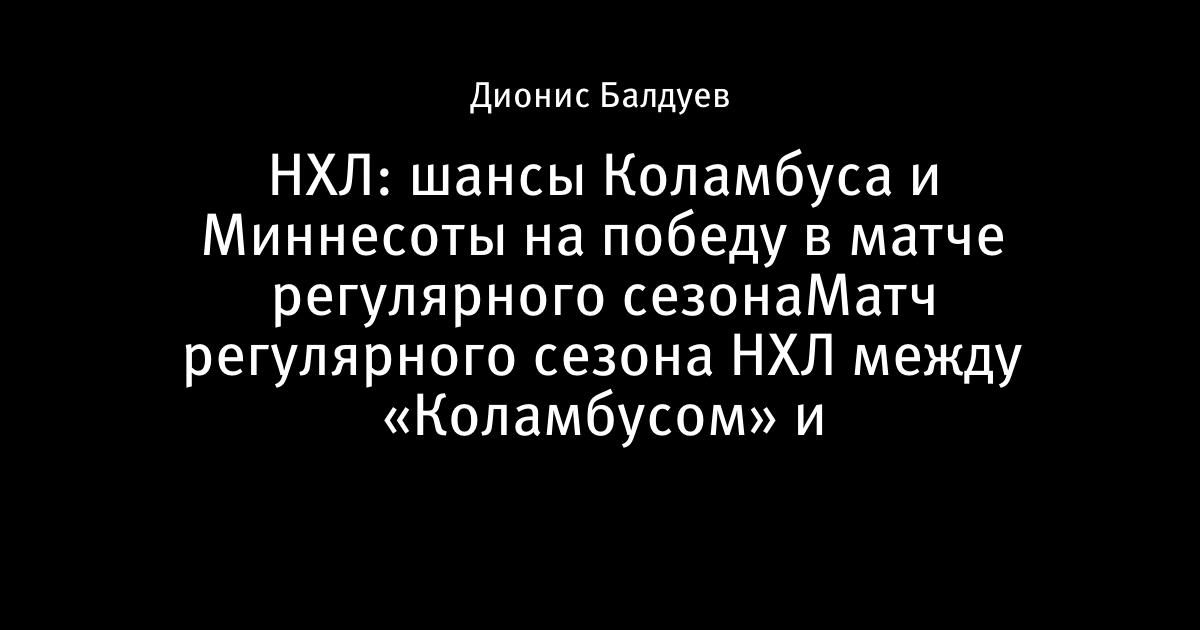 НХЛ: шансы Коламбуса и Миннесоты на победу в матче регулярного сезонаМатч регулярного сезона НХЛ между «Коламбусом» и