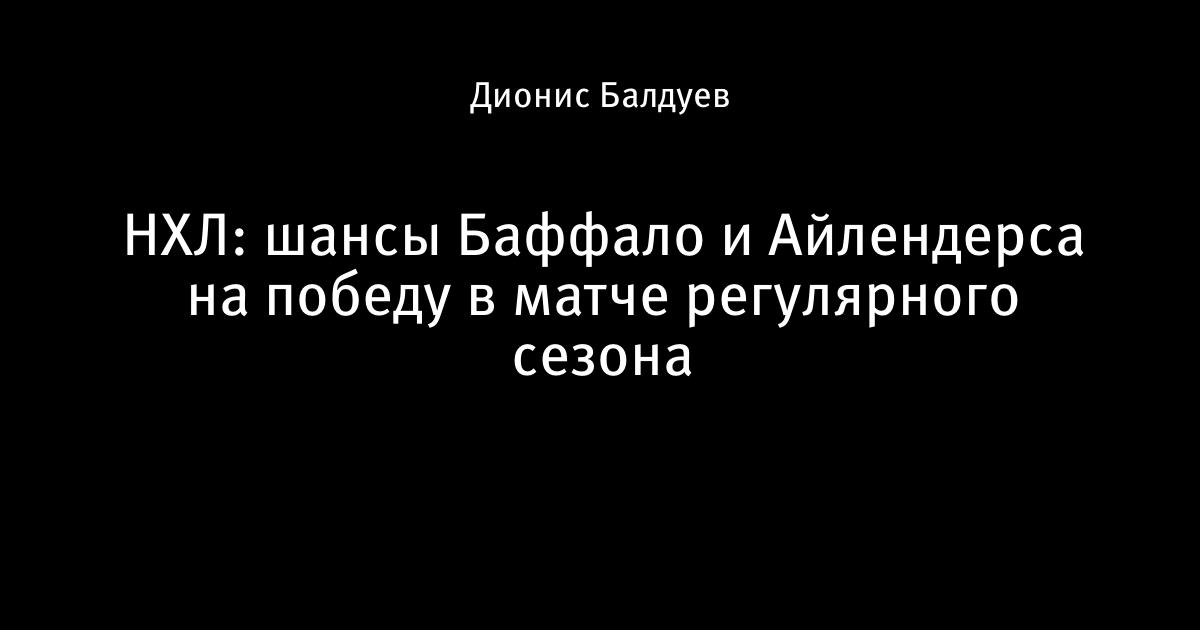 сегодня, 10:19 НХЛ: шансы Баффало и Айлендерса на победу в матче регулярного сезона Этот пост написан пользователем Sports.ru, начать писать может каждый болельщик (сделать это можно здесь). НХЛ: шансы Баффало и Айлендерса на победу в матче регулярного сезона Автор Дионис Балдуев