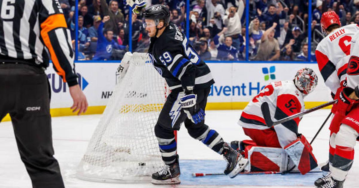 «Тампа-Бэй Лайтнинг»-»Каролина Харрикейнз» 6:4. Хозяева во 2 и 3 периодах забросили по 3 шайбы. Джейк Гюнтцель забросил 2 шайбы, Райан МакДонах набрал 2 очка (1+1), Доминик Джеймс и Шарль-Эдуард Д’Астус отдали по 2 результативные передачи, Никита Кучеров отдал результативную передачу, Андрей Василевский отразил 18 бросков. У гостей Андрей Свечников забросил одну шайбу.