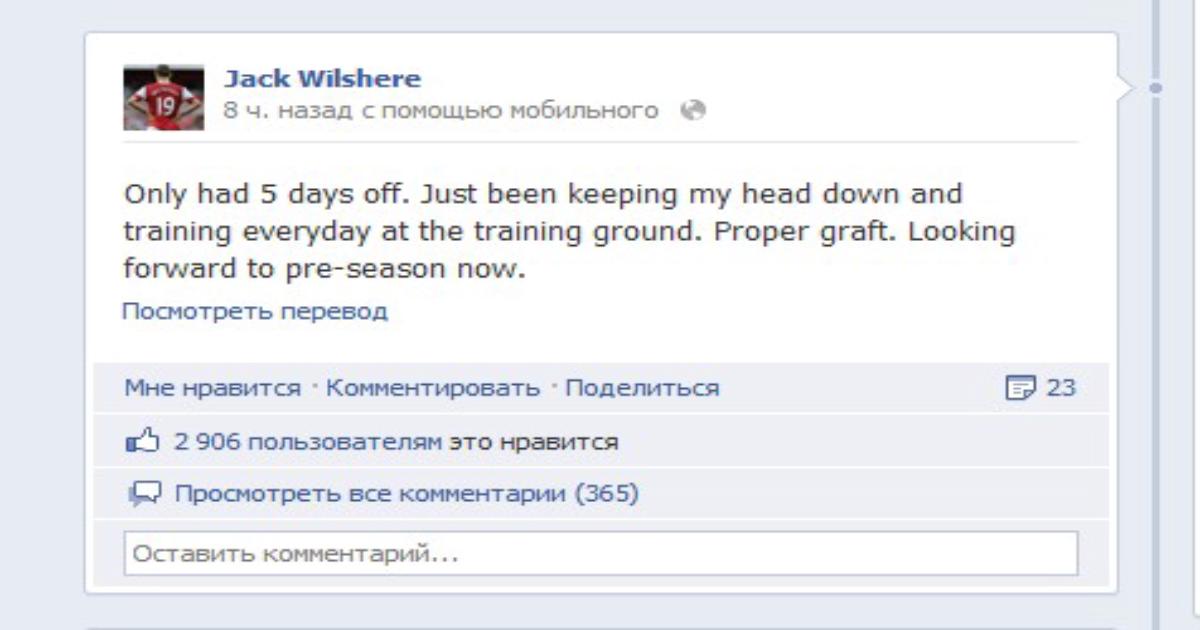 А сегодня Джек Уилшир написал на своей официальной страничке в Фейсбуке: