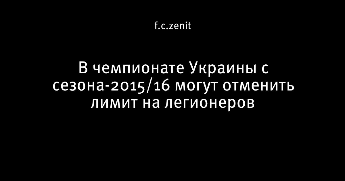 1 июля 2012, 15:39 В чемпионате Украины с сезона-2015/16 могут отменить лимит на легионеров Автор f.c.zenit Этот пост опубликован в блоге на Трибуне Sports.ru. Присоединяйтесь к крупнейшему сообществу спортивных болельщиков! Другие посты блога Спортивные баталии