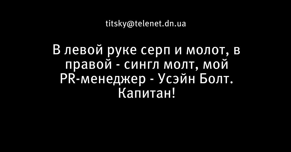 В левой руке серп и молот, в правой - сингл молт, мой PR-менеджер - Усэйн Болт. Капитан!