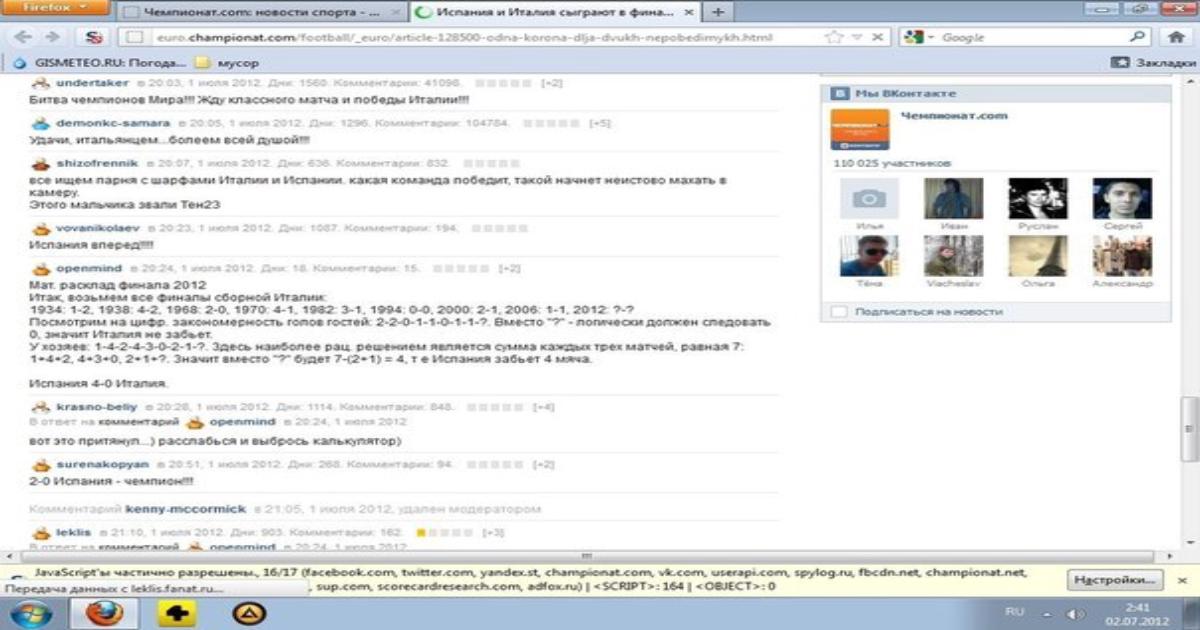 2 июля 2012, 09:10 Как?! Автор Chapman Этот пост опубликован в блоге на Трибуне Sports.ru. Присоединяйтесь к крупнейшему сообществу спортивных болельщиков! Другие посты блога Вы это видели? Сборная Испании по футболу Сборная Италии по футболу