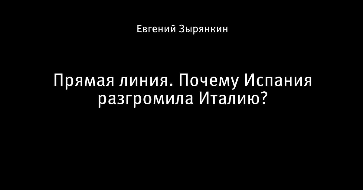 Только вот дель Боске тоже много думал перед игрой. И, конечно, понимал, к чему готовится Италия – одновременно видя точки перфорации, по которым ее можно разорвать. Три недели назад его команда попала впросак, увязнув в насыщенной итальянской обороне. Но в плей-офф «Скуадра адзурра» перестроилась – и, возможно, сама того не ведая, обнаружила слабость: ее четыре защитника располагаются не вполне компактно и при этом очень ровной прямой линией. Из этого логично образовался план на игру: насыщение игроками центральной зоны перед штрафной и диагональные проникающие передачи вразрез через полусредние зоны. Туда можно вбегать и с флангов, срезая углы за спиной крайних защитников, и, наоборот, перед их носом, пока центральный нападающий отвлекает на себя внимание кого-то из связки Бардзальи – Бонуччи. А поскольку дальнейшее расположение игроков обороны очевидно: лицом к своим воротам, передачи под удар должны были направляться назад – на линию штрафной или в район 11-метровой отметки. В общем, классика игры в футбол.