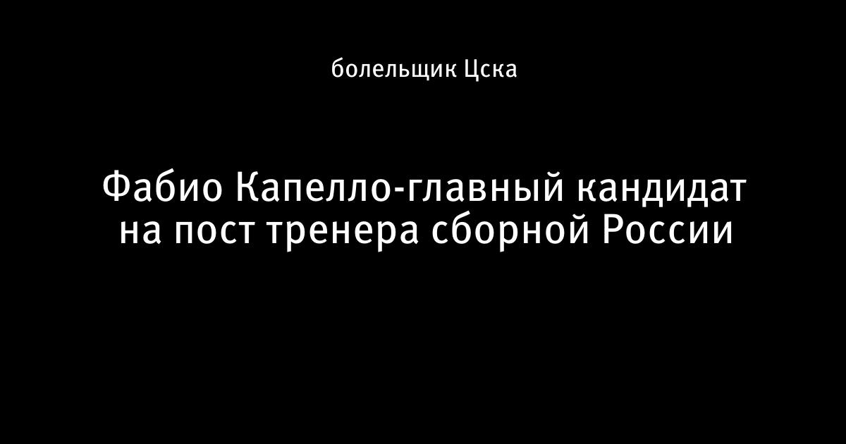 Ну что, друзья... Нового главу РФС изберут только 3 сентября... Есть факт, который говорит о том, что пока не станет известно имя нового президента РФС, не станет известно и имя нового тренера сборной. А 1-ая офиц.игра состоится 7 сентября. Ну не бред ли назначать тренера за 4 дня до... ну вы сами поняли чего. Ладно на товарняк с ивуарийцами поставим Бородюка. Отставим эту тему... Перейдём к другим кандидатам на пост. А точнее, кандидату, который вполне не прочь возглавить нашу сборную.Фабио Капелло. Честно? Я отношусь к его возможному назначению двояко. С одной стороны, к нам приедет тренер топ-уровня. С другой, не факт, что Фабио станет проводить смену поколений. А ведь это может привести к тому, что в 2018 году, на чемпионате мира 2018, у нас будут играть 40-летние Аршавины, Кержаковы, и т.п. Не-не, так не надо! Эта смена итак затянулась. А вообще, я буду только рад, если с новым, хоть российским, хоть с иностранным тренером, хоть с тем же Капелло мы выиграем крупный турнир...