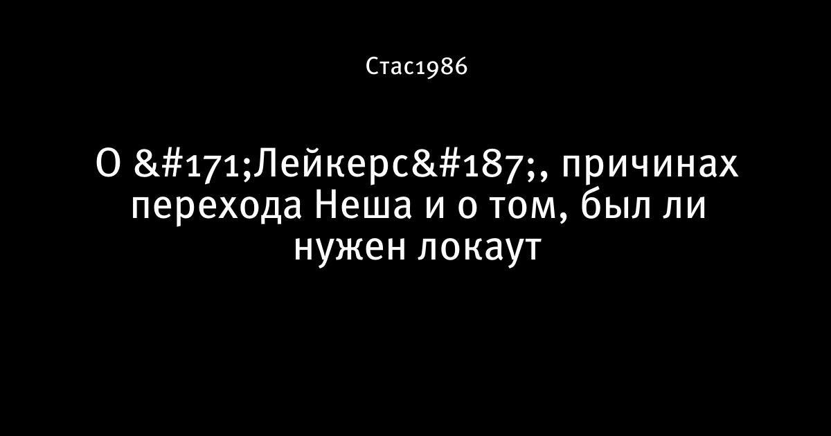 О «Лейкерс», причинах перехода Неша и о том, был ли нужен локаут